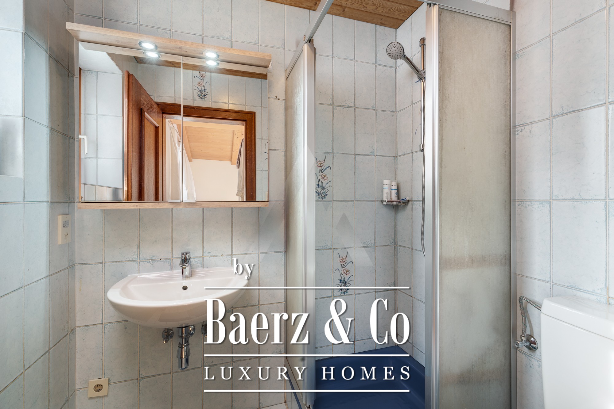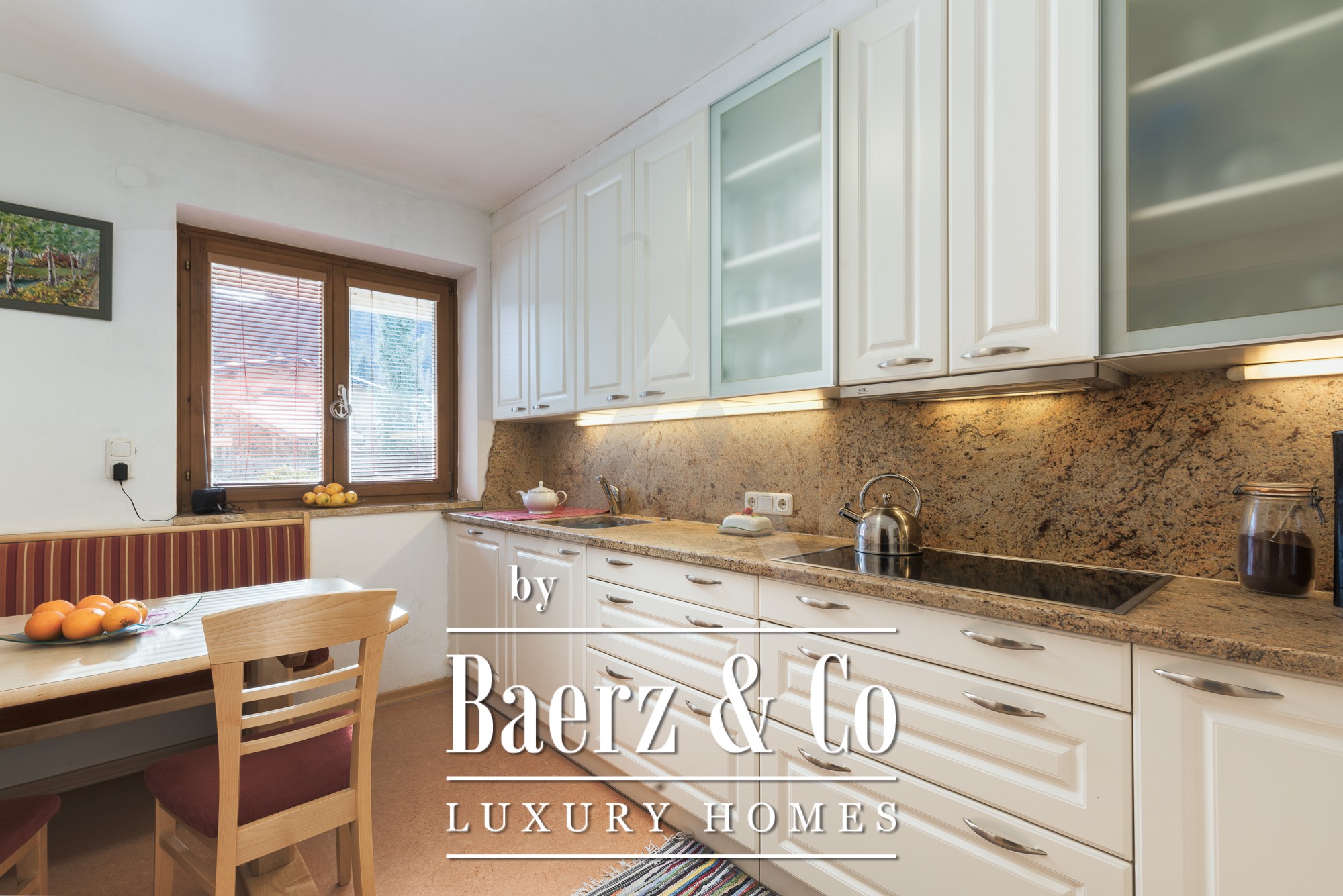 The garden features a generous lawn and a garden house, while the basement includes a workshop, storage rooms, boiler room, and direct access to a large garage and outdoor parking. Central and floor heating, satellite television, and thoughtful touches deliver a quietly modern baseline beneath the Tyrolean roofline. Located in a cul-de-sac, the property is moments from ski lifts, lakes, and tennis courts—foundations for a year-round alpine lifestyle. The peaceful Brixen setting, just ten minutes from Kitzbühel, blends local tradition with access to Austria’s largest ski region.