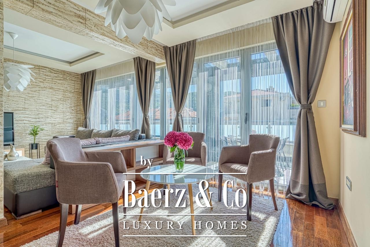 The penthouse Budva is situated just 800 meters from the city center and 1.5 kilometers from the Adriatic shore, bringing both urban rhythm and the serenity of the coastline within easy reach. International access is seamless, with Tivat Airport 19 kilometers away and Podgorica Airport at 59 kilometers. Within walking distance, discover boutiques, restaurants, groceries, schools, and the city mall, ensuring comfort for year-round living or long-term letting.