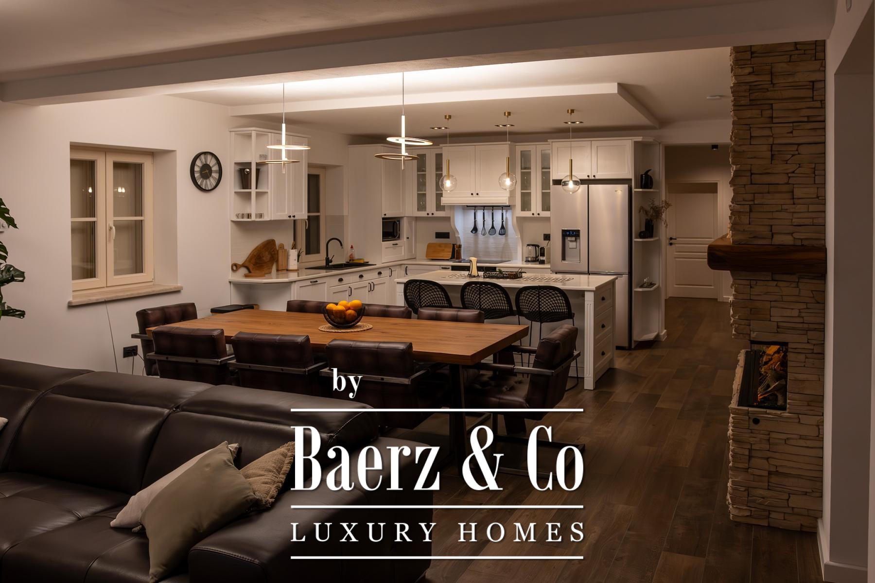 The basement creates space for gathering, featuring a wine store, a social area, a bathroom with Finnish sauna, and a flexible room that can serve as a gym, game room, or home cinema, along with two technical rooms. Outdoors, the infinity pool draws the gaze toward uninterrupted countryside views. The property includes a covered barbecue, a garden house for storage, and two parking spaces within the 511 m² plot. This luxury villa for sale in Buje offers a measured pace of living, surrounded by nature, presenting itself as either a refined investment or a discreet personal retreat.