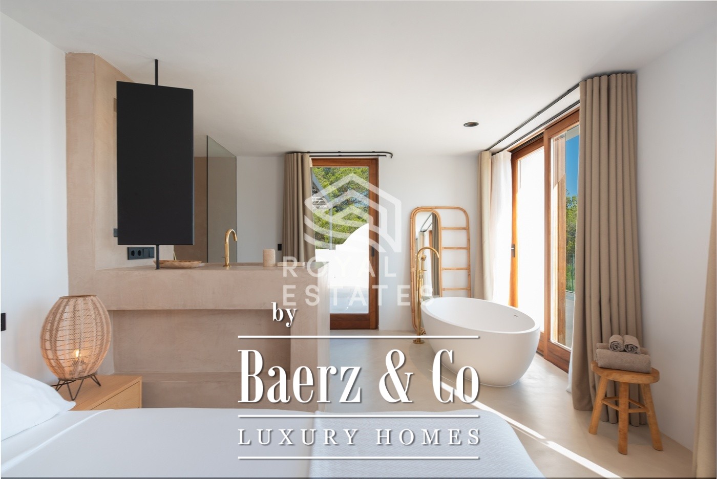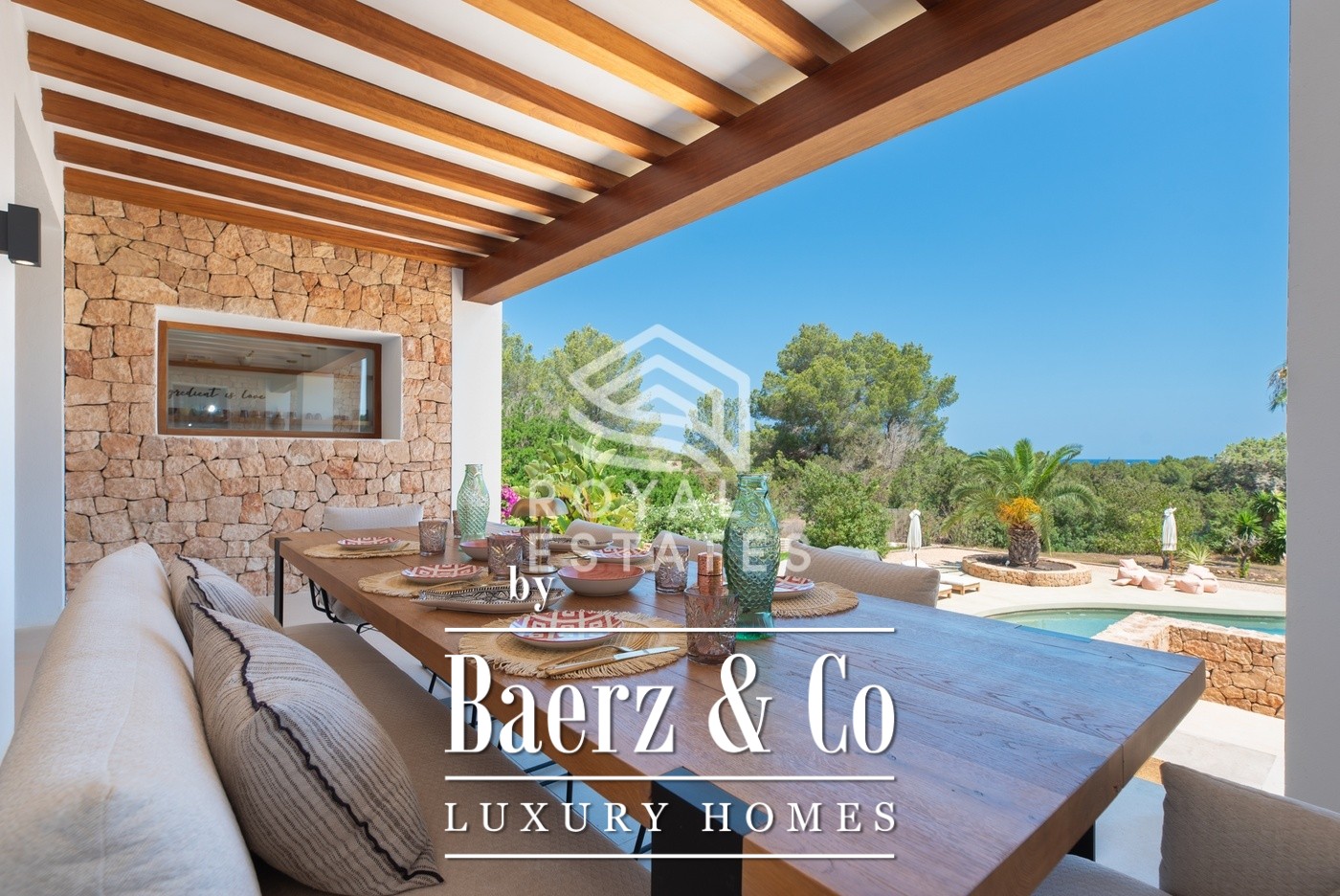 Villa Cala Bassa harmonizes understated luxury and the Ibiza lifestyle within a remarkable 586 m² home. This villa in Cala Bassa is distinguished by panoramic sea views and a privileged location walking distance from Cala Bassa and Cala Comte. The property sets itself apart with refined comfort, full furnishings, and a meticulous turn-key standard that anticipates the needs of an international owner.