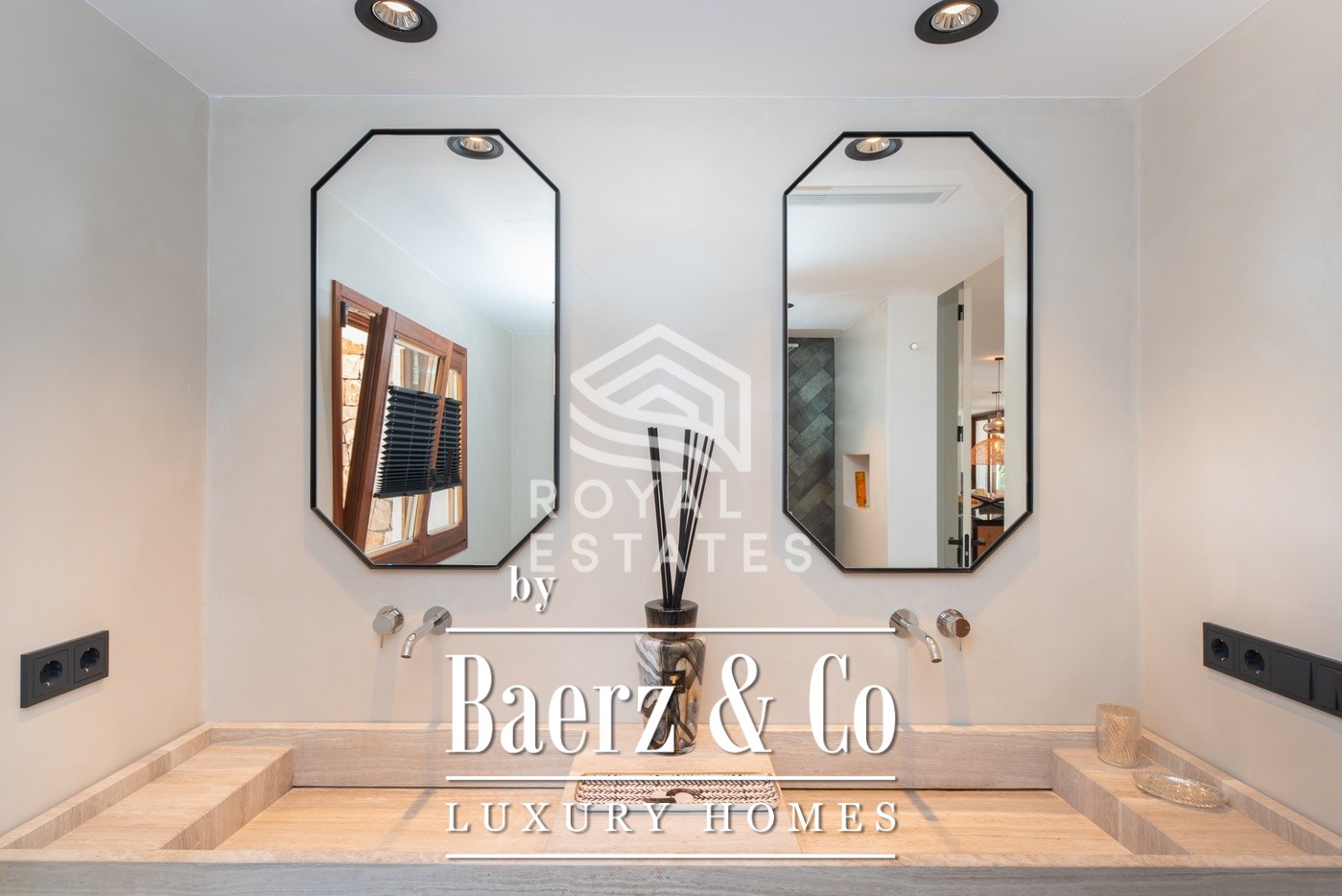 On a private 4,000 m² estate with no direct neighbours, security is enhanced through an advanced alarm and surveillance system. Sustainability is woven in with solar panels, greywater recycling, and water purification. Cala Bassa’s most refined villa for sale is equally suited to a discreet family retreat, an exceptional holiday base, or a base for sophisticated island entertaining.