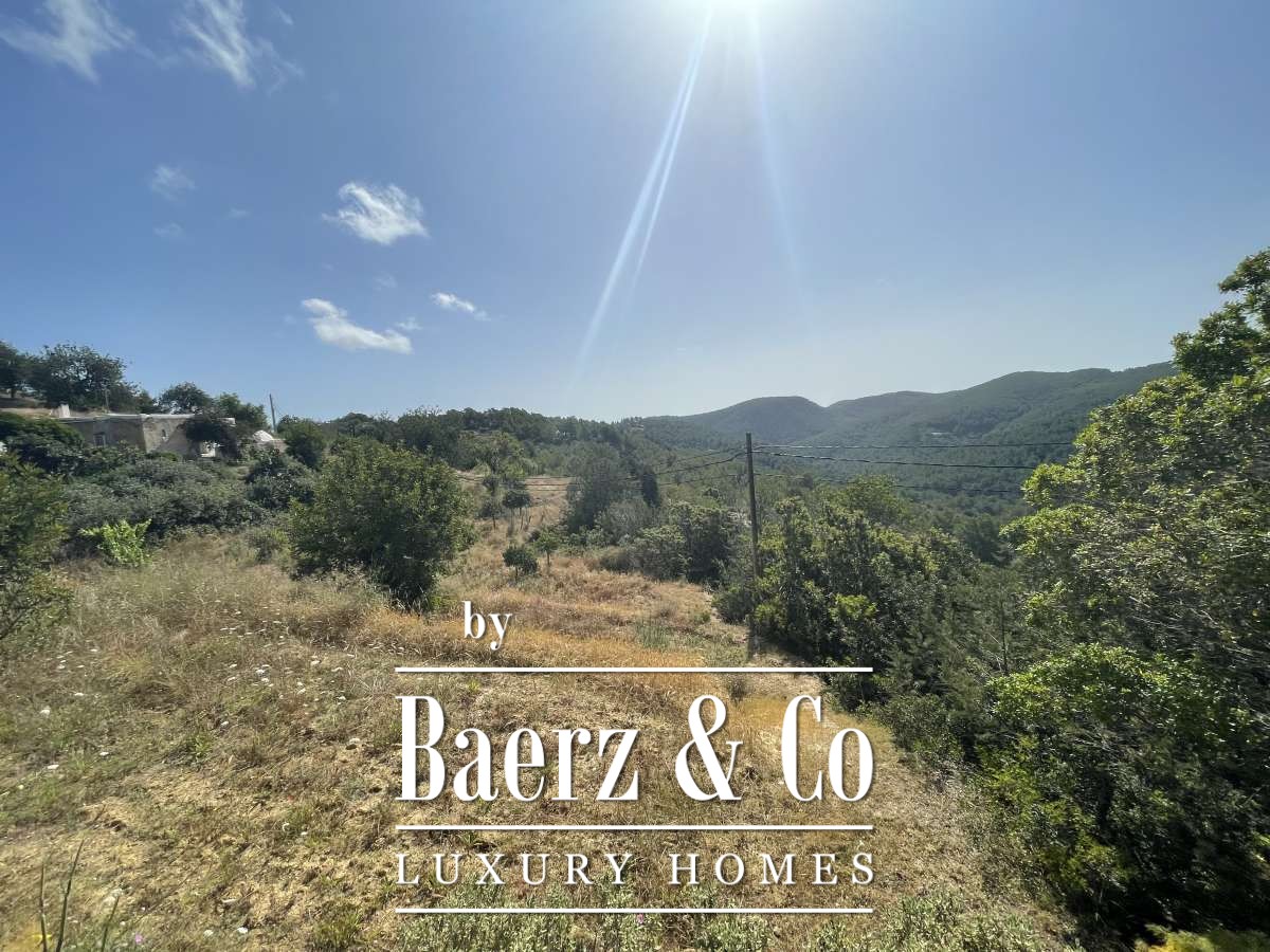 The villa offers four bedrooms and two bathrooms, arranged for privacy and quietude. Several barns and storage areas extend the finca’s potential, all waiting to be reimagined. The surrounding land, open and natural, provides uninterrupted views over green hills and toward the distant blue of the Mediterranean. Discretion is integral here, where only the serenity of Ibiza’s landscape joins you.