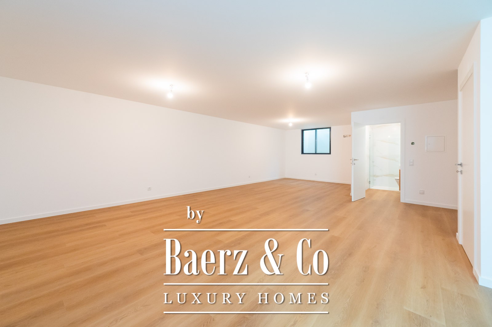 At the heart of the villa, an open plan living and kitchen area extends across 51 m², bathed in light and linking directly to a landscaped garden and a heated swimming pool. The kitchen is fully equipped with Bosch appliances, reflecting a commitment to discreet performance. Underfloor heating on the first and second floors, electric shutters, a central vacuum system and a security installation support seamless living.