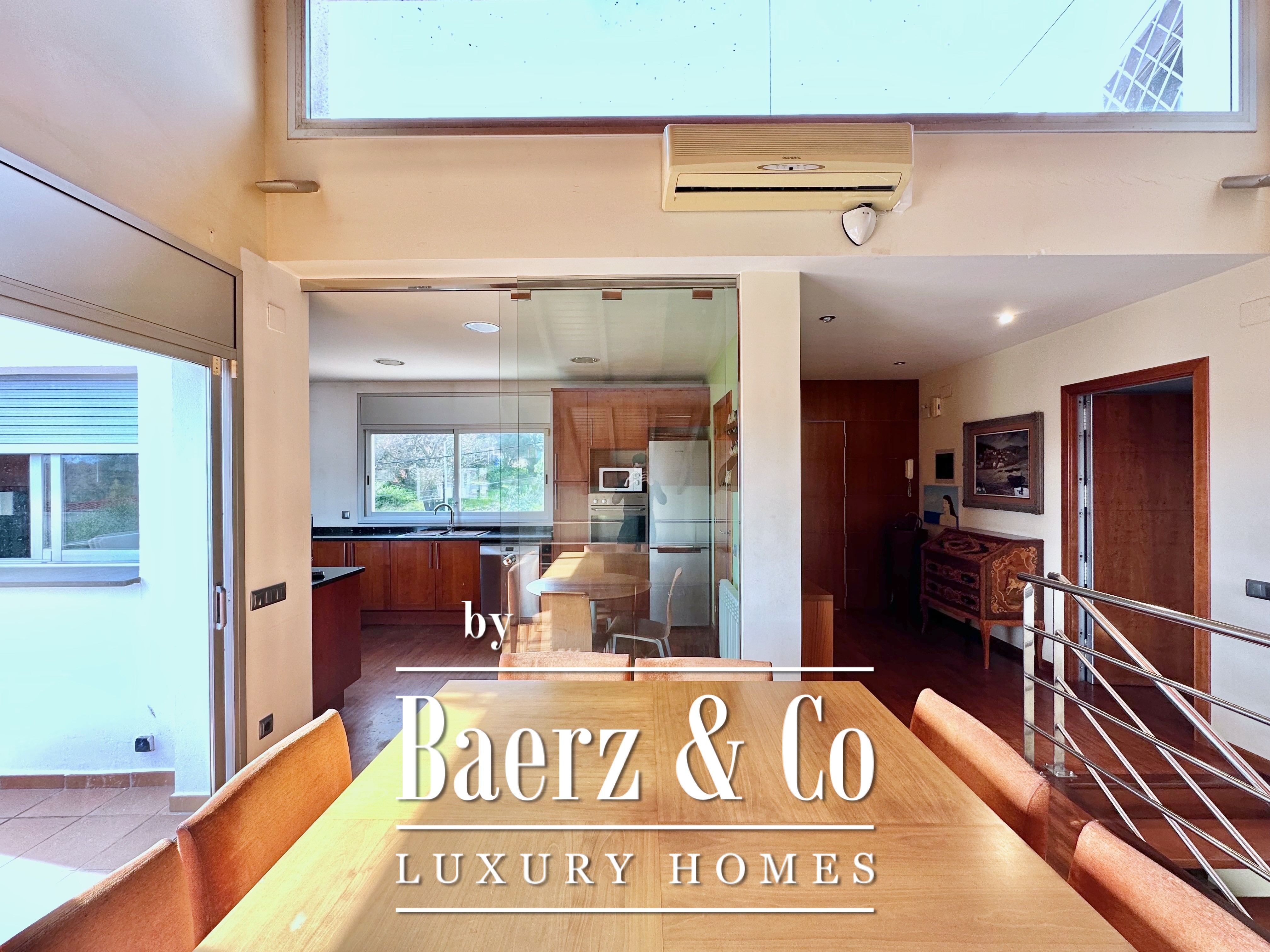 This detached house Castelldefels offers a refined balance of design, light, and privacy. Positioned a short walk from both the town centre and the Mediterranean shore, the property unfolds across a 739 m² corner plot, providing space and seclusion. The residence, built in 2002, encompasses 302 m² distributed over two well-connected levels, each with independent access for versatile living.