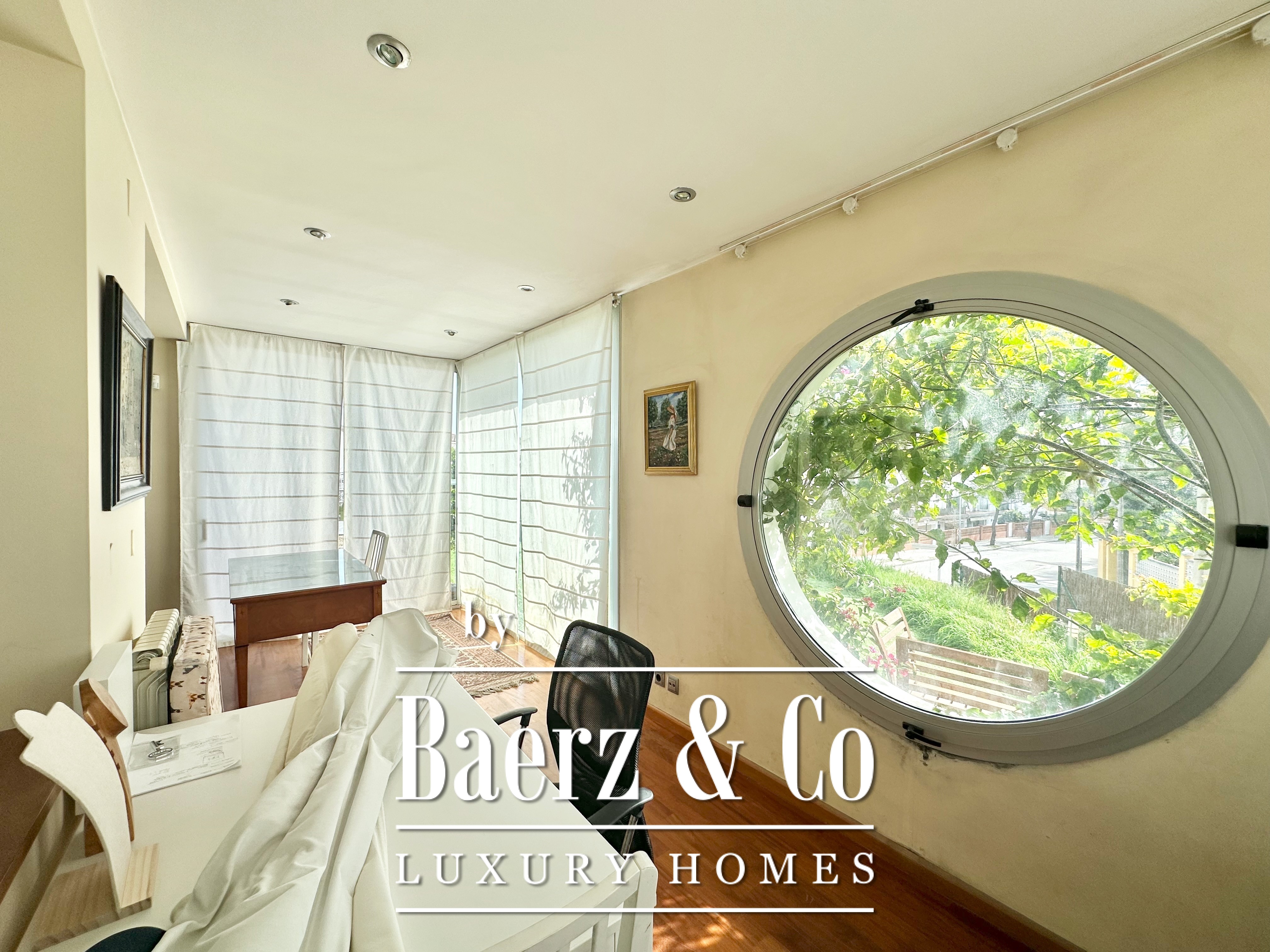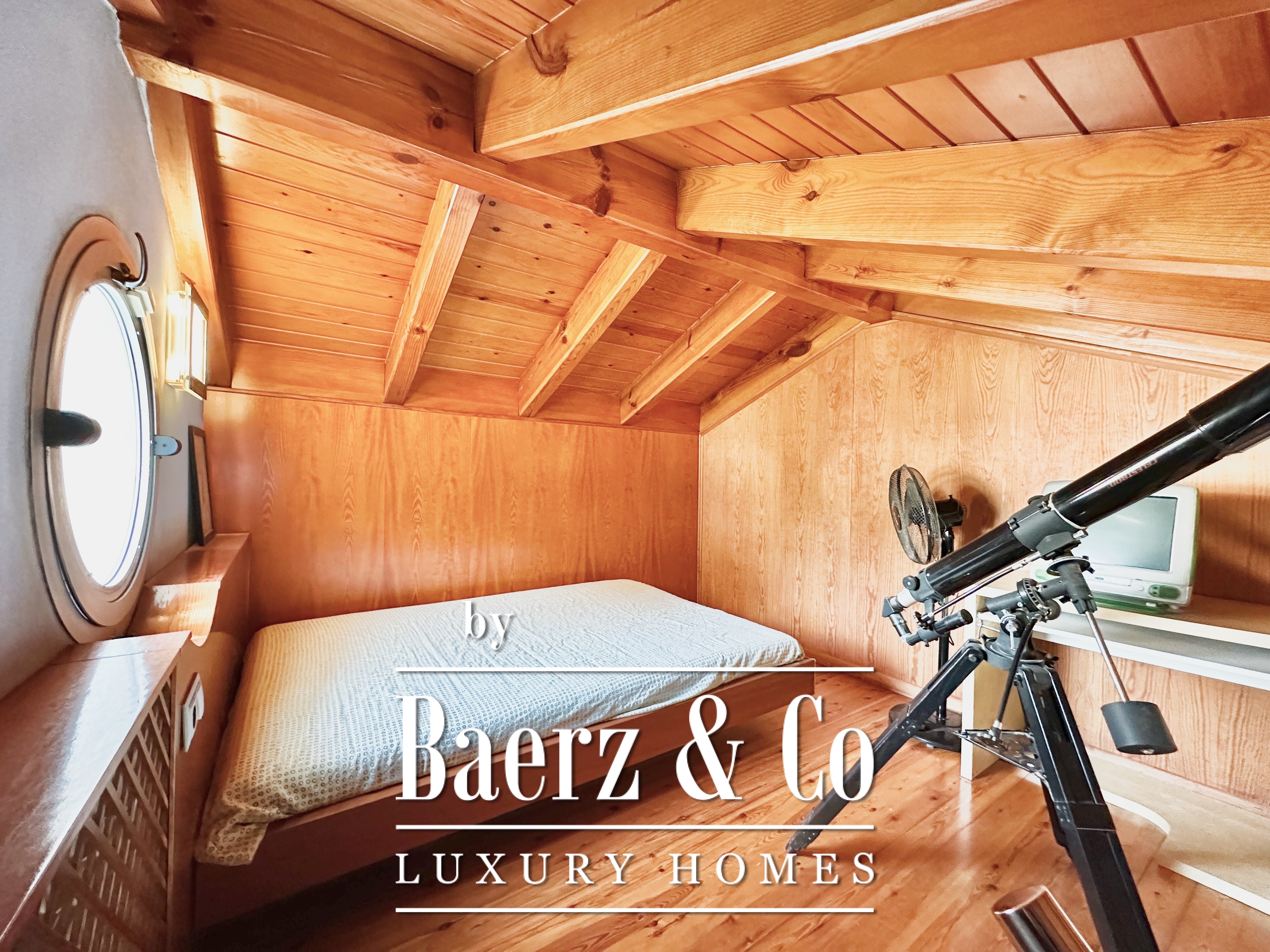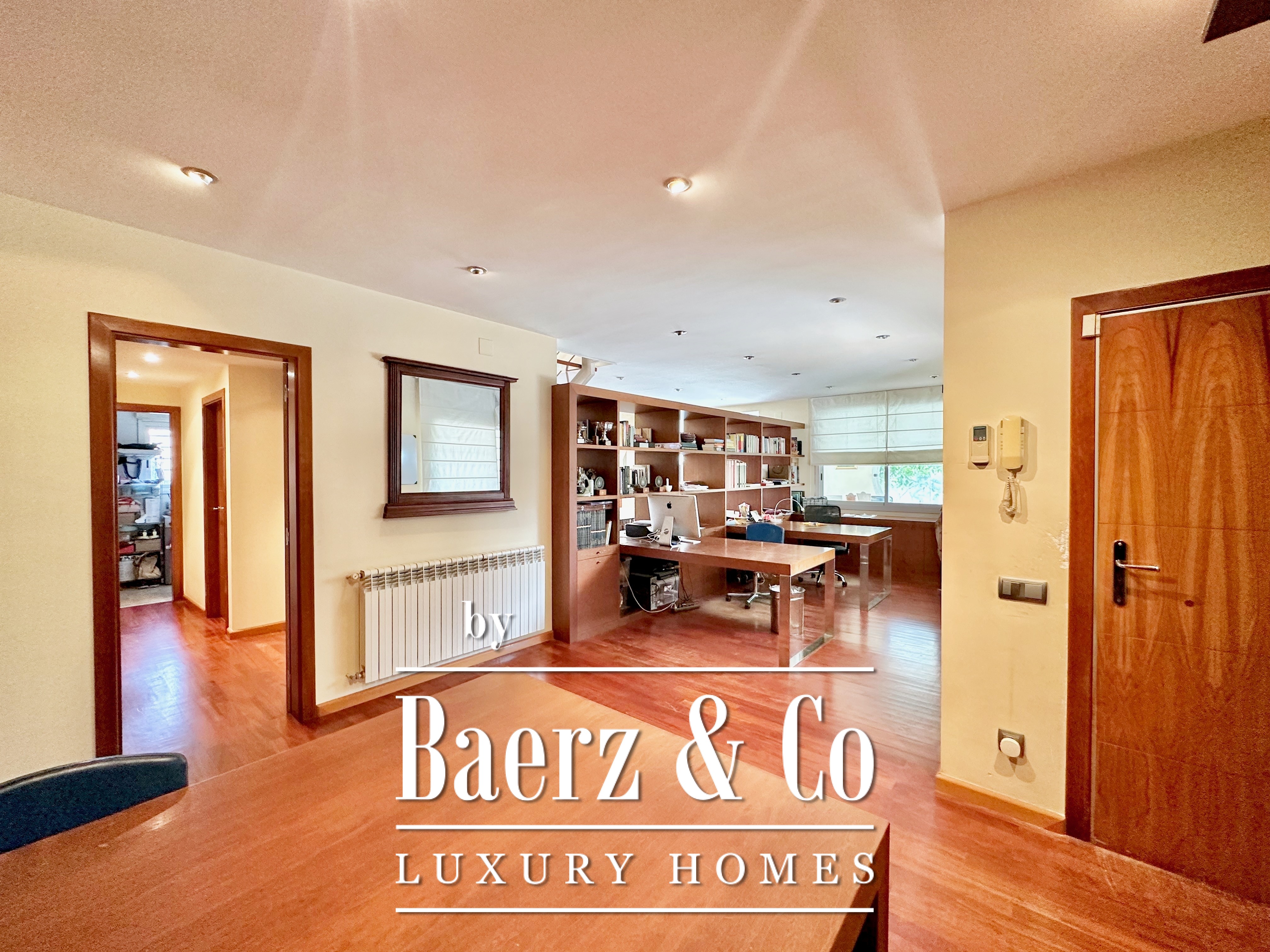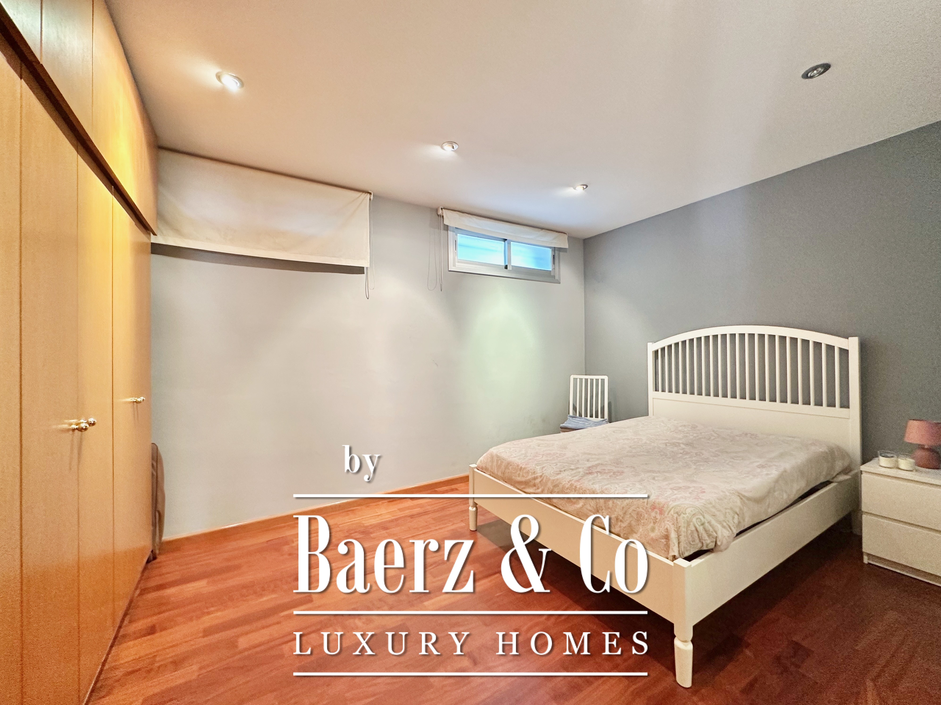 The private quarters include five bedrooms and two bathrooms. Two double rooms merge into a flexible, expansive suite above 20 m², easily returned to the original layout. An attic loft offers potential for work or leisure with direct access to a 20 m² terrace showcasing panoramic mountain views. The main suite features a dressing area and an elegant five-piece bathroom, balancing comfort with quiet sophistication. This detached house for sale in Castelldefels subtly integrates every element for a considered lifestyle in one of Spain’s respected coastal localities.