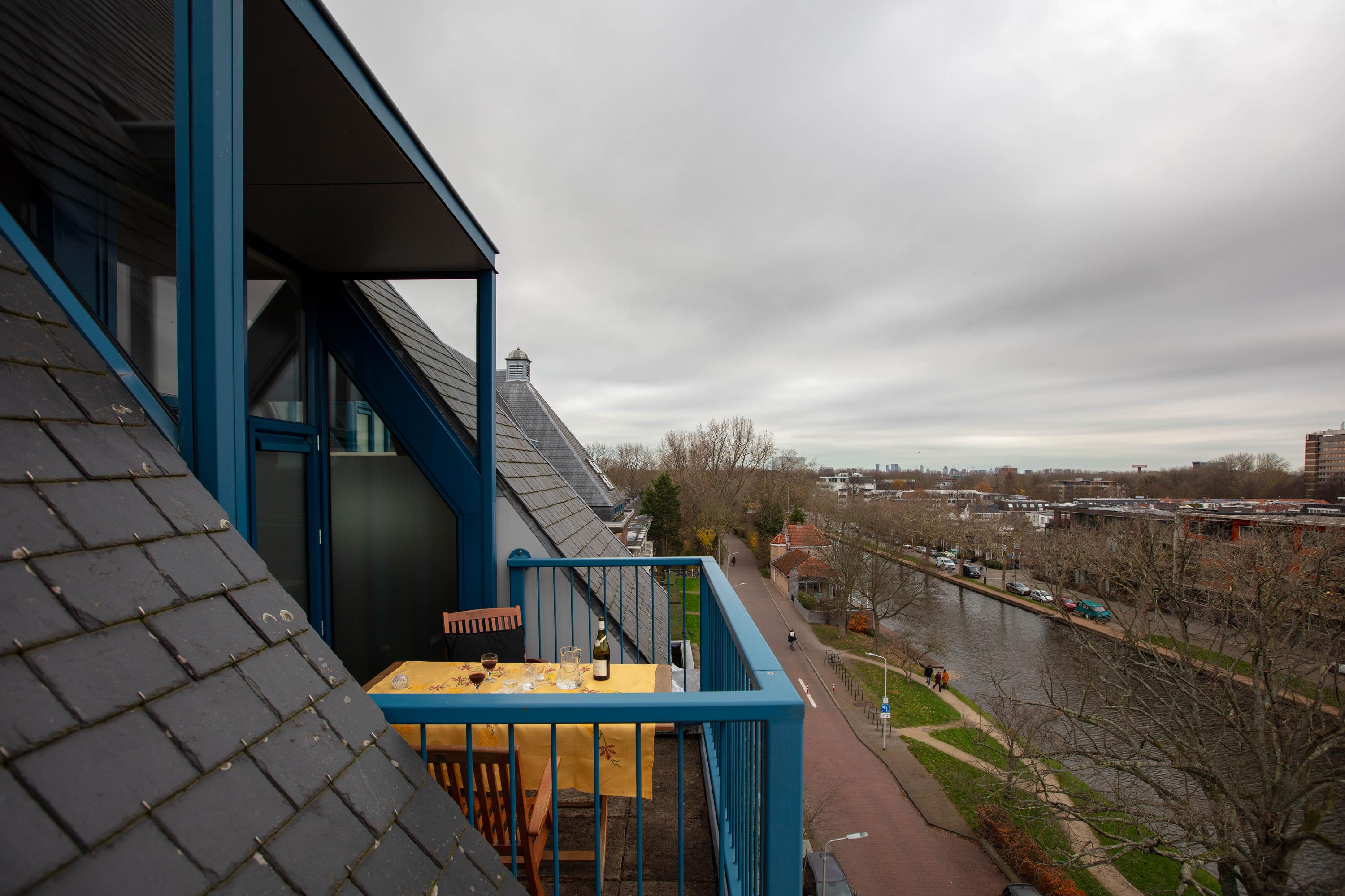 Via openslaande deuren is het terras bereikbaar, waar u heerlijk buiten kunt zitten met vrij uitzicht over Delft richting de Delftse Hout en over de Schie.
