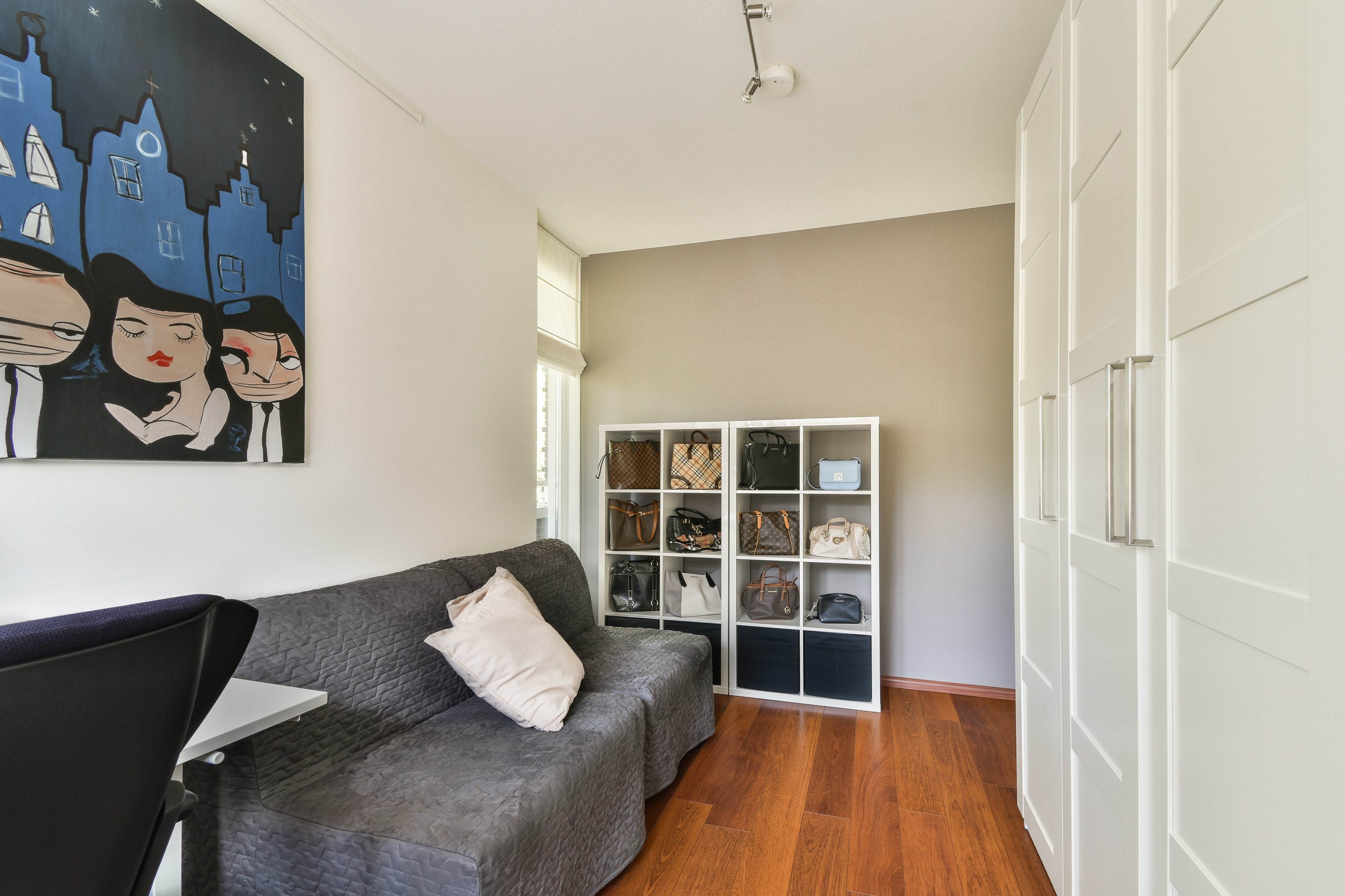Deze slaapkamer is op dit moment in gebruik als luxe werkruimte met dakkapel en een dakvenster.