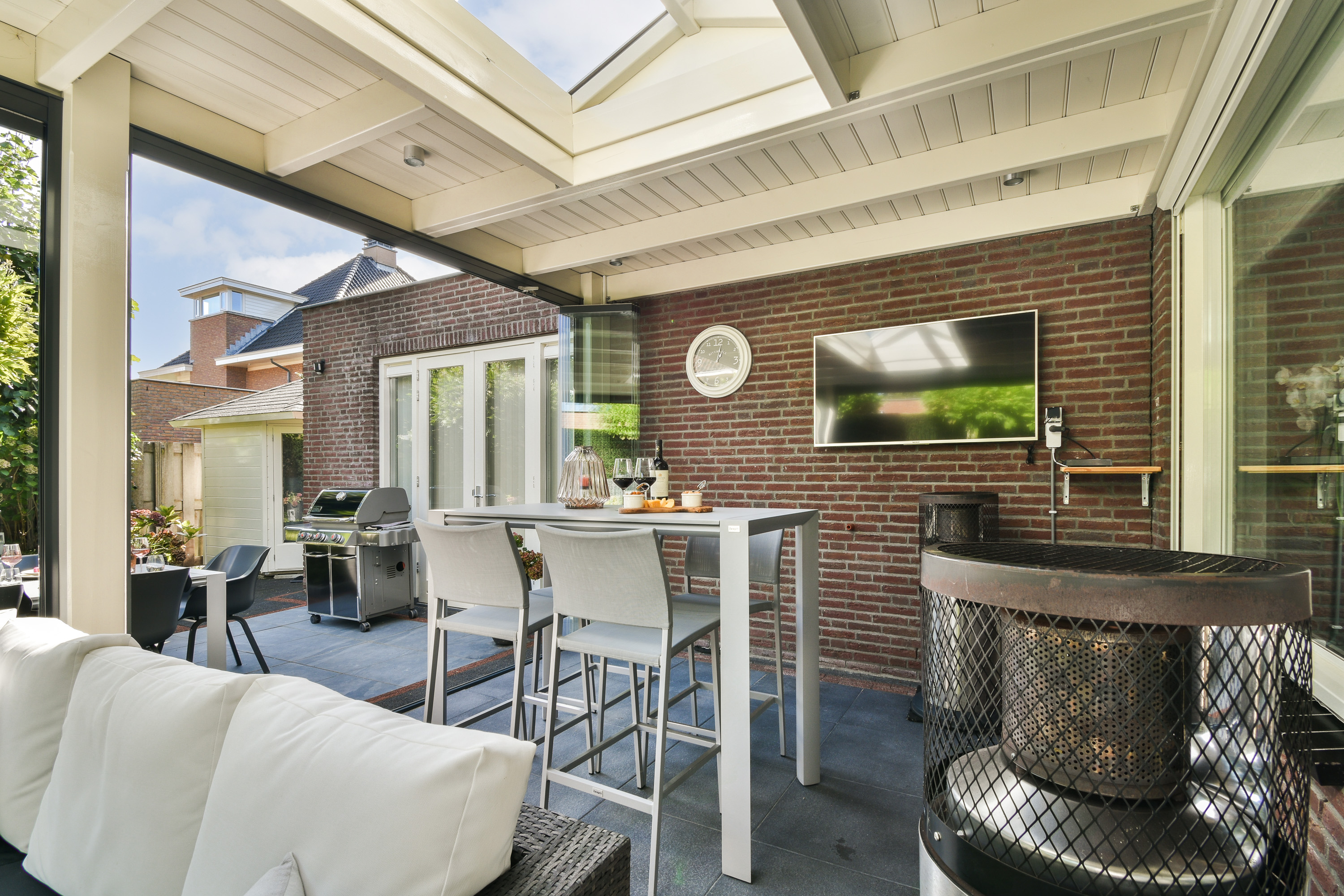 Aan de royale oprit met sierpoort (inclusief carport met lichtstraat in stijl van deze villa) begint het gevoel van thuiskomen al. Er is ruimte voor meerdere auto's (de laadpaal zal achterblijven).
