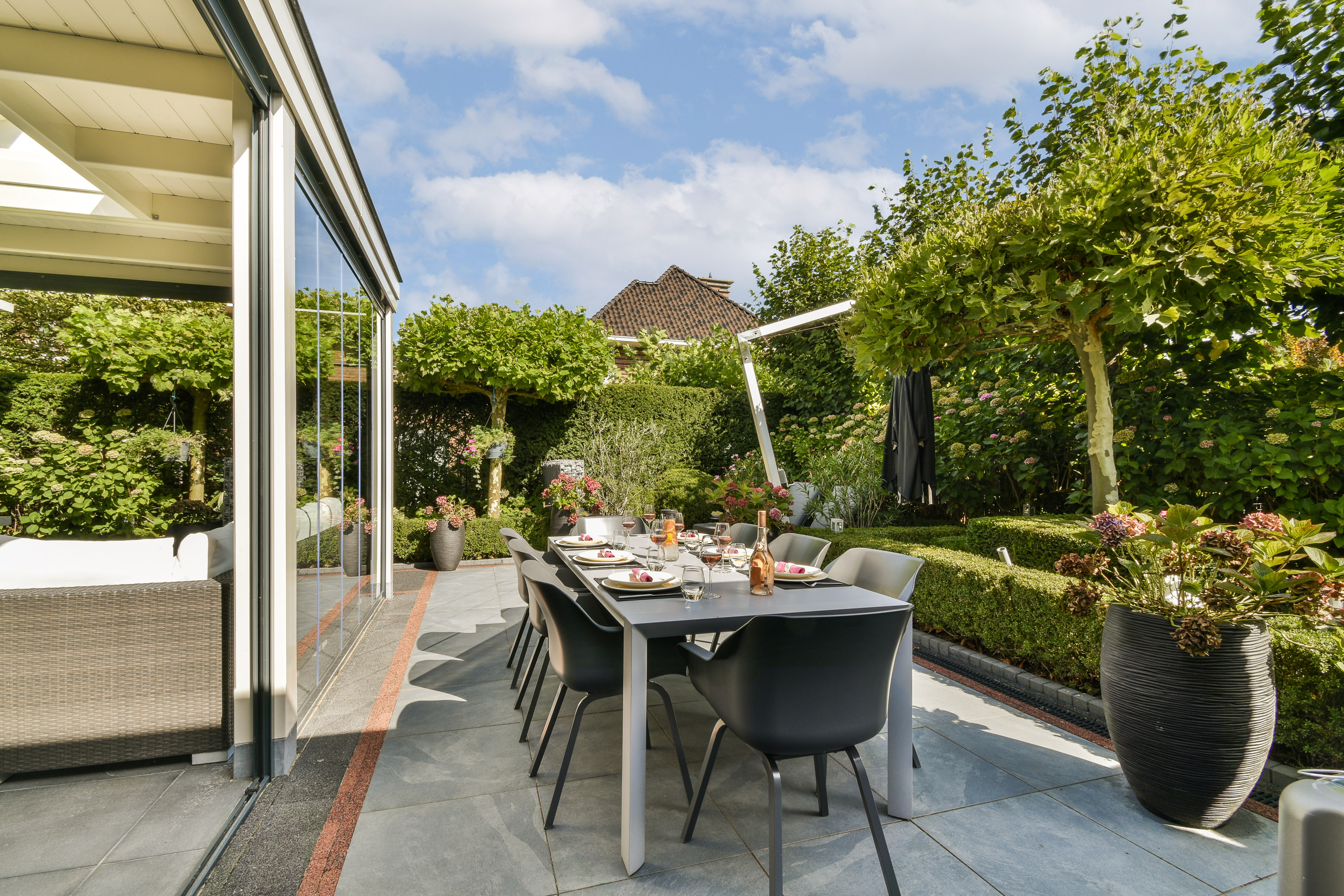 - Hordeuren in de openslaande tuindeuren aanwezig.