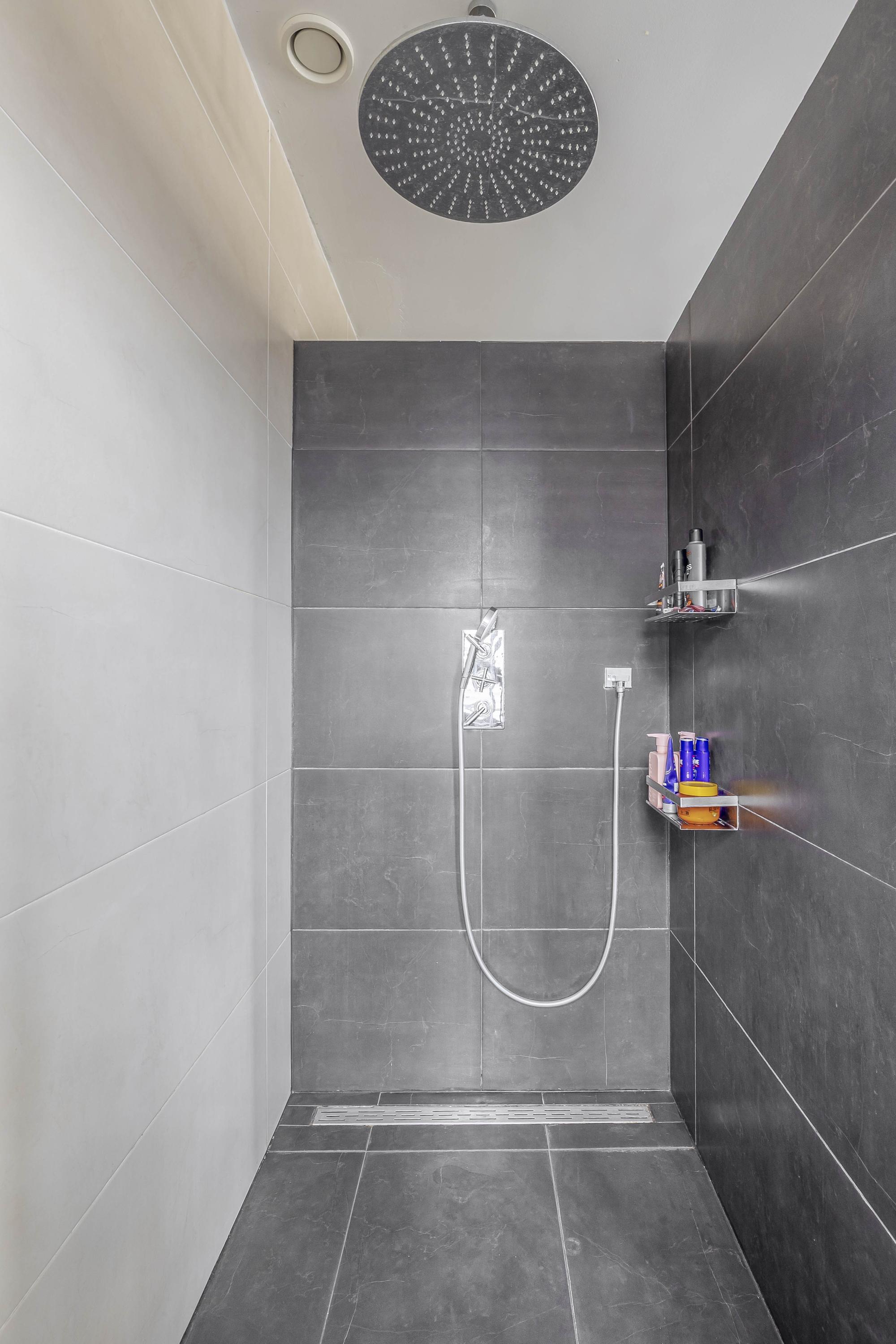 Through the spacious entrance with beautiful tiled floor, modern toilet and extensive meter cupboard, you enter the kitchen at the front of the house. This stylish and complete kitchen is the heart of the house and features a kitchen island, luxury appliances and plenty of workspace. Thanks to the raised floor level, you have a beautiful view of the street.