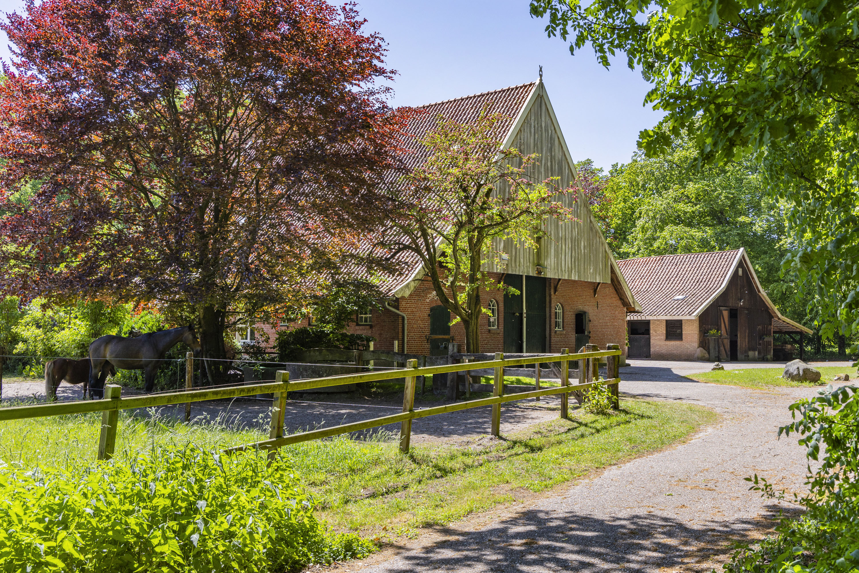 This unique estate sits on a central, yet secluded location at the edge of the quiet and green villa district Het Stokhorst. From the farmhouse you can walk straight into the park-like landscape of “de Hoge Boekel”. The surroundings offer many walking and cycling routes to enjoy nature to the fullest.