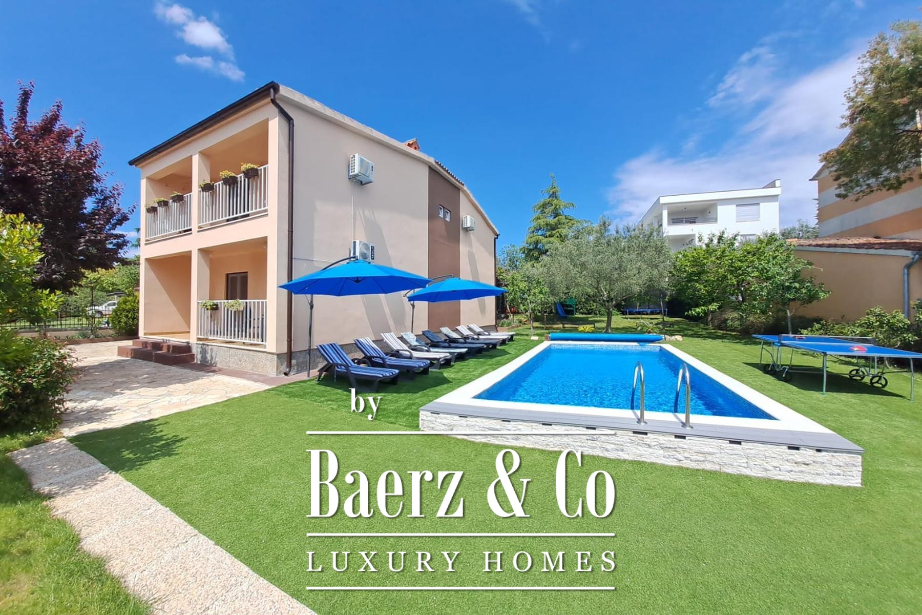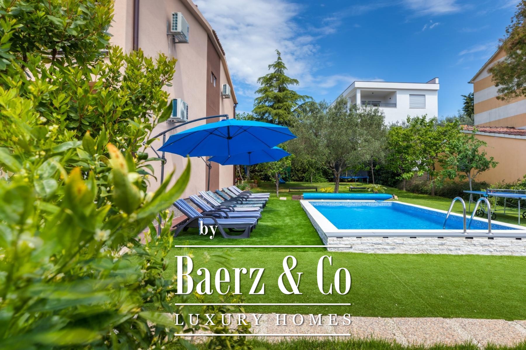 Family house Fažana presents a sense of ease and calm moments just 600 meters from the Adriatic shore. This 200 m² residence, set within a cultivated 815 m² garden, is designed to balance private family life and refined hospitality.