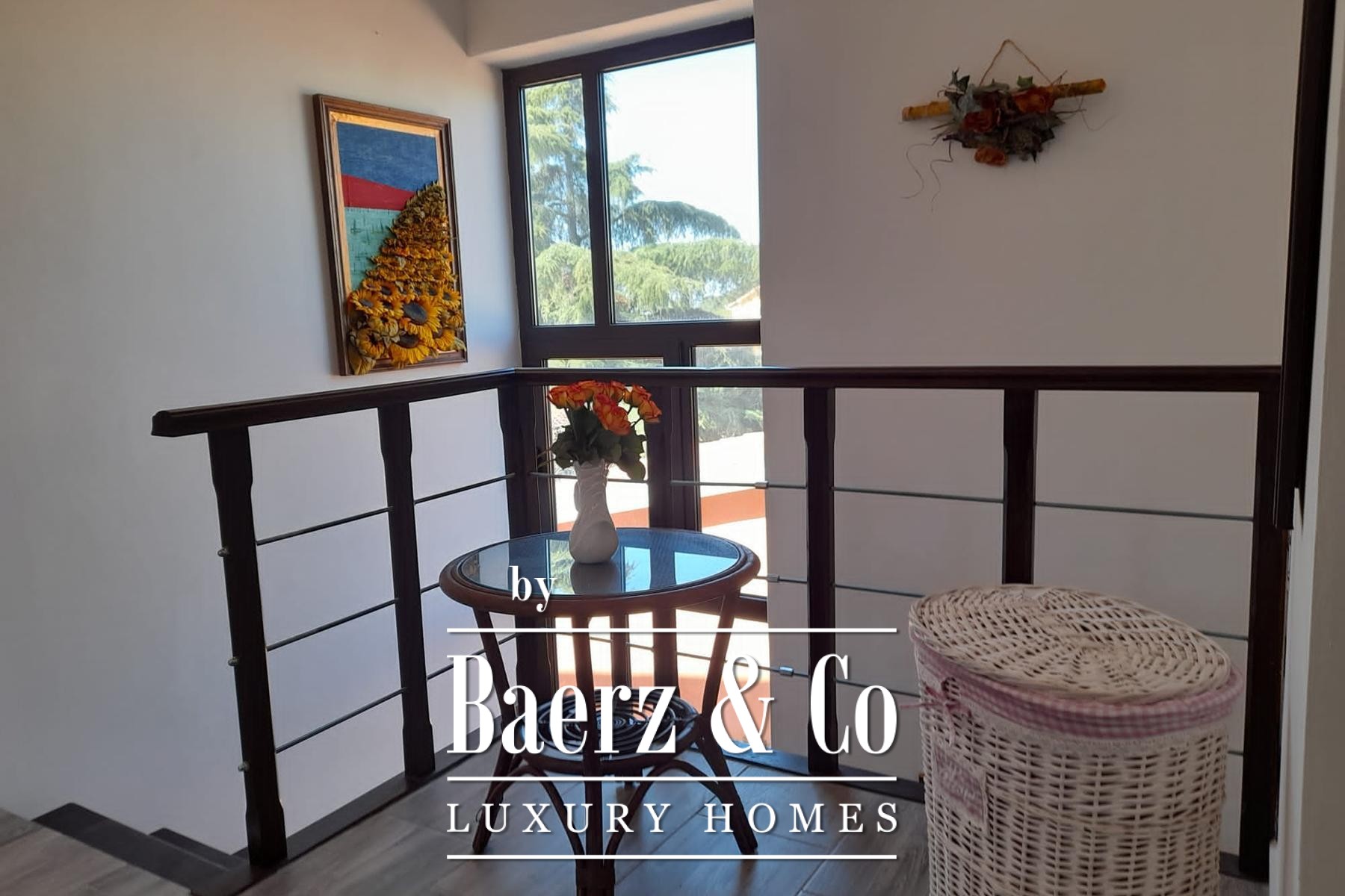 On the upper floor, four serene bedrooms—each featuring air-conditioning and a TV—provide sanctuary, with two bedrooms sharing a terrace overlooking the grounds. Two additional bathrooms complement this level, supporting an unhurried pace of living.
