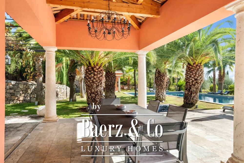Outdoors, a heated swimming pool and pool house are sheltered within lush vegetation, accompanied by a broad terrace for private gatherings. Sea and mountain views add an exceptional sense of place, while a double garage, alarm system, videophone, and gated entry ensure both security and discretion. This luxury mansion for sale in Grasse is designed for those who appreciate light, space, and serenity at the heart of Provence.
