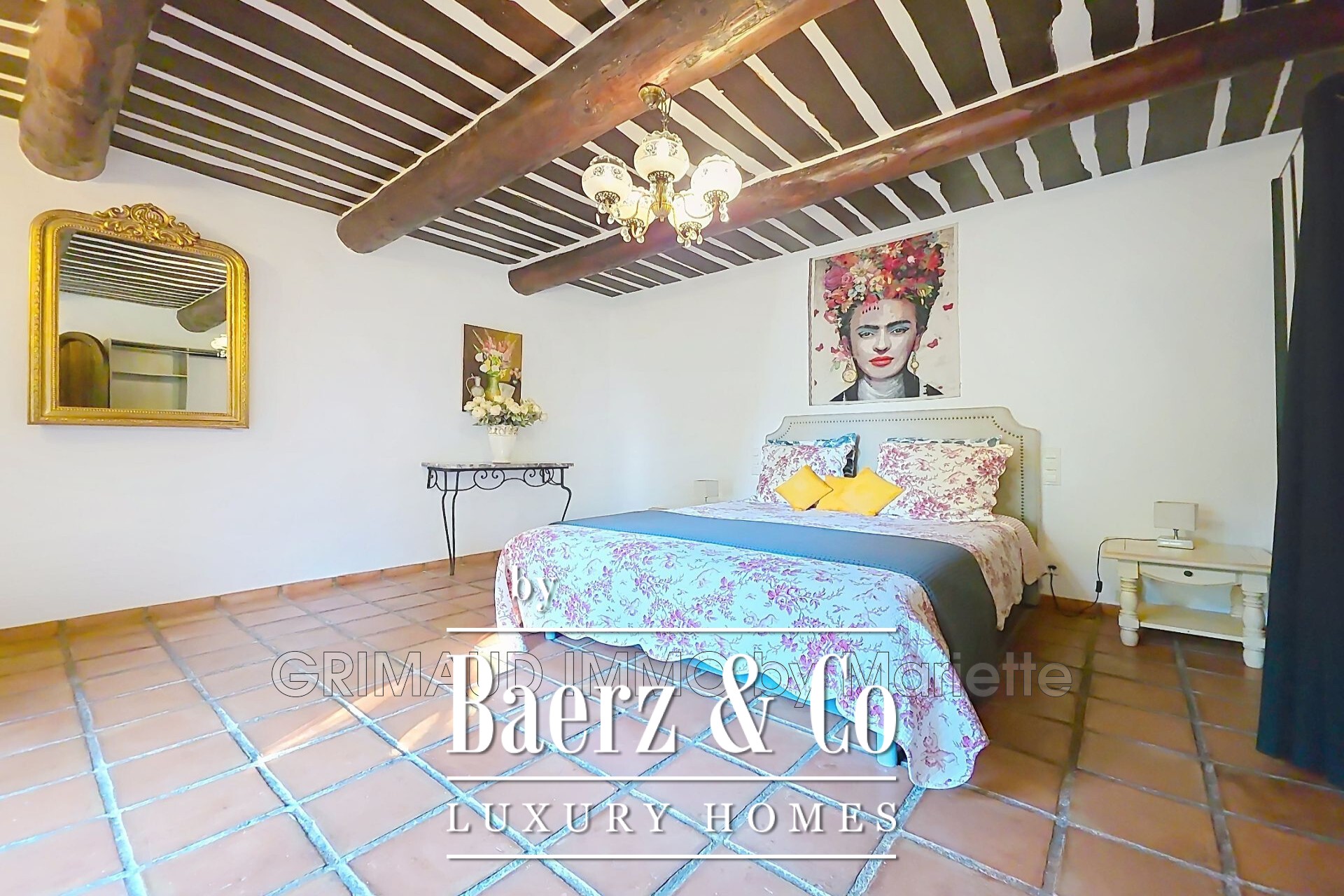 Charming detached house of approximately 360 m² built in 2008, located in the peaceful town of Grimaud and divided into two separate units. Perfect for a family or as a rental property. The first section includes a living room with an open, fully equipped kitchen, two bedrooms, and two bathrooms. The second section features a living room, an independent fully equipped kitchen, a TV lounge, three bedrooms, and three bathrooms. The single-level layout ensures easy movement throughout.