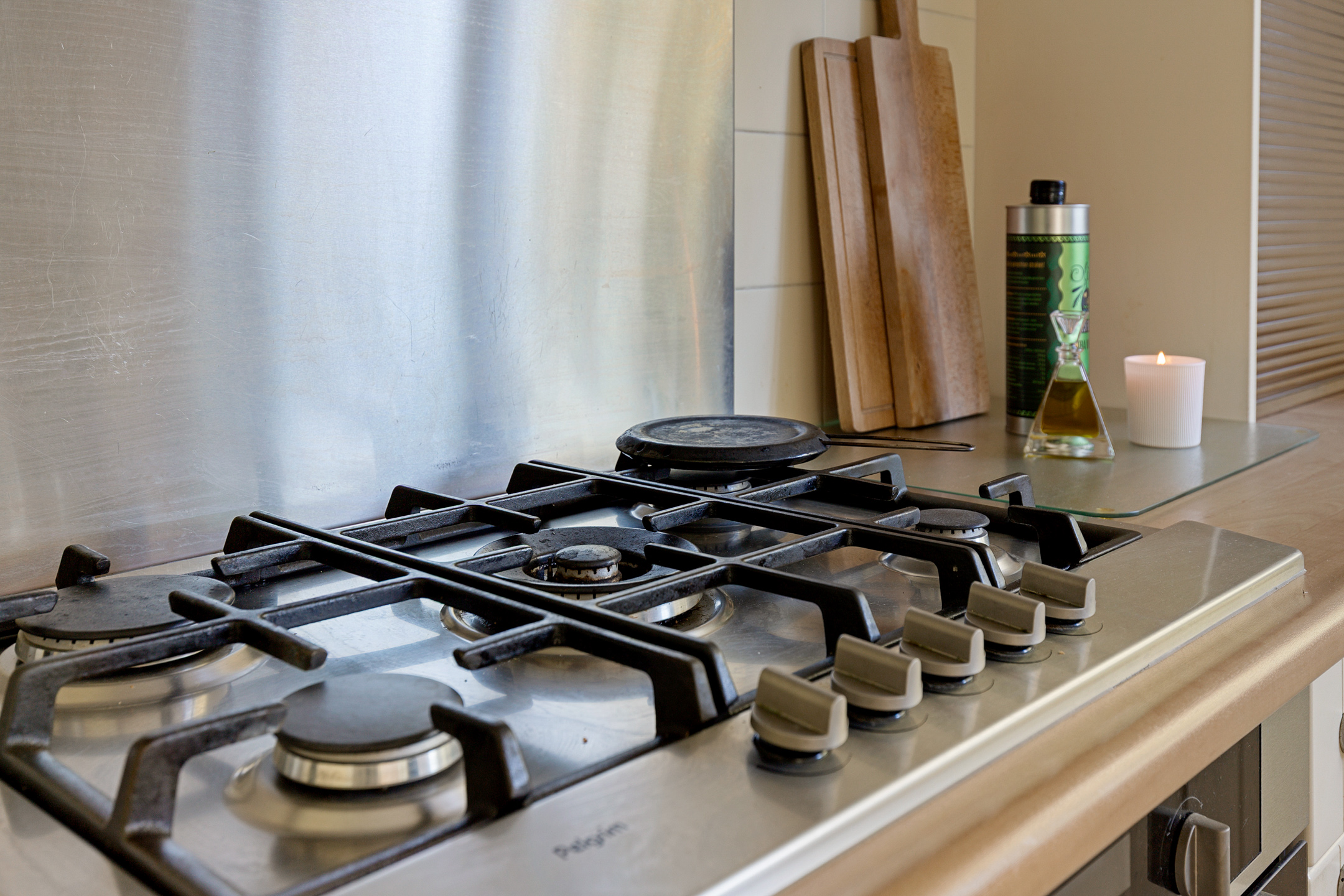 The adjacent utility room provides space for laundry appliances and has direct access to both the garden and garage. The entire ground floor is finished with a natural stone floor and underfloor heating.