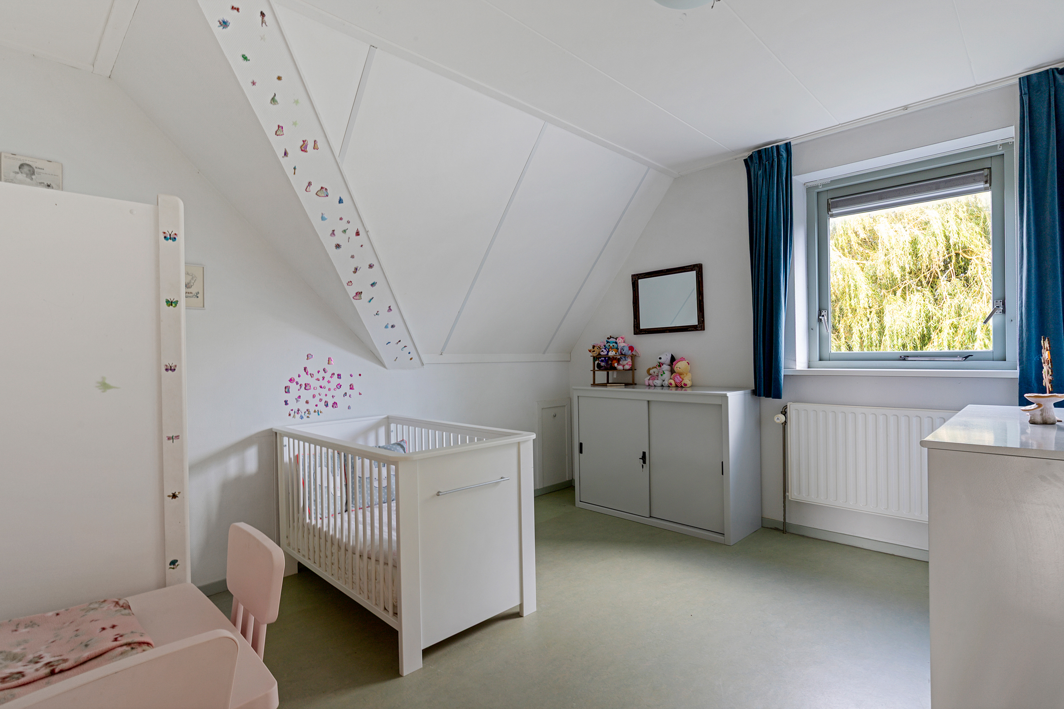 A well-insulated attic with natural light (two windows) is accessible via loft stairs. Thanks to the roof structure, this space has standing height and makes an excellent dry storage area. Mechanical ventilation is also located here.