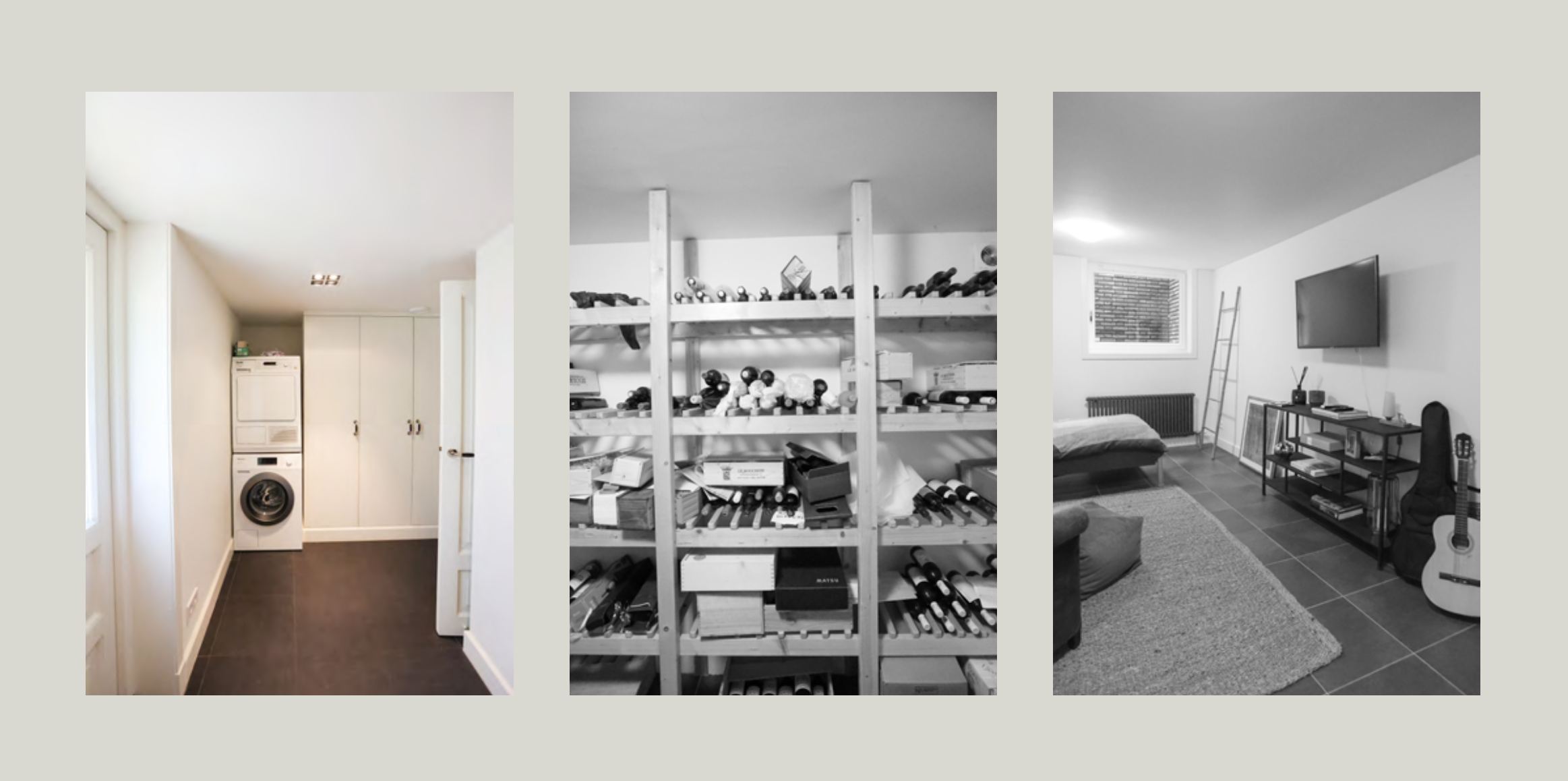 The spacious entrance hall gives access to a guest toilet, a practical utility/laundry room, and a surprisingly complete basement with a guest room, storage space, and its own wine cellar.