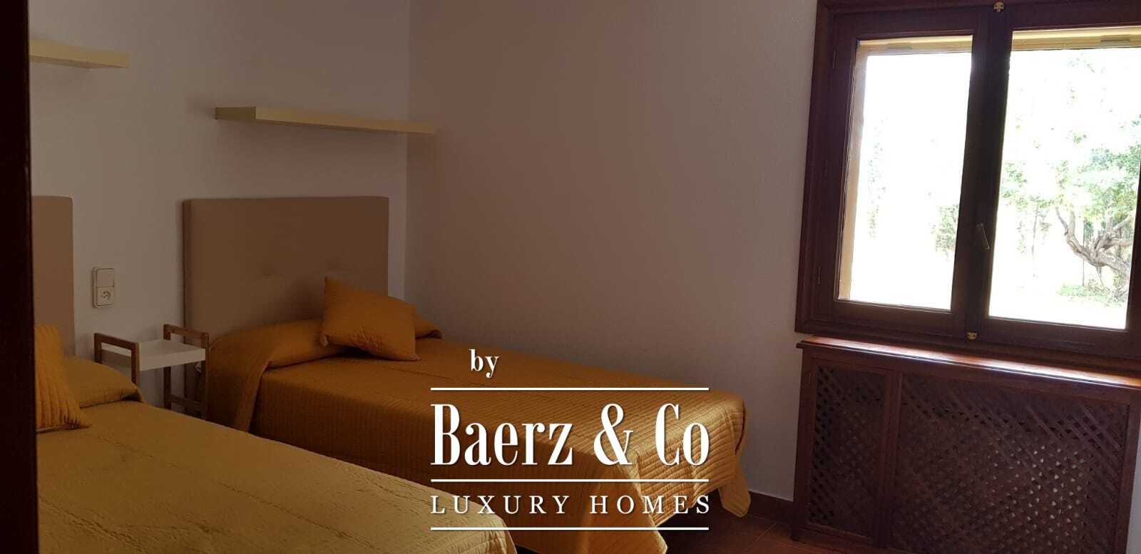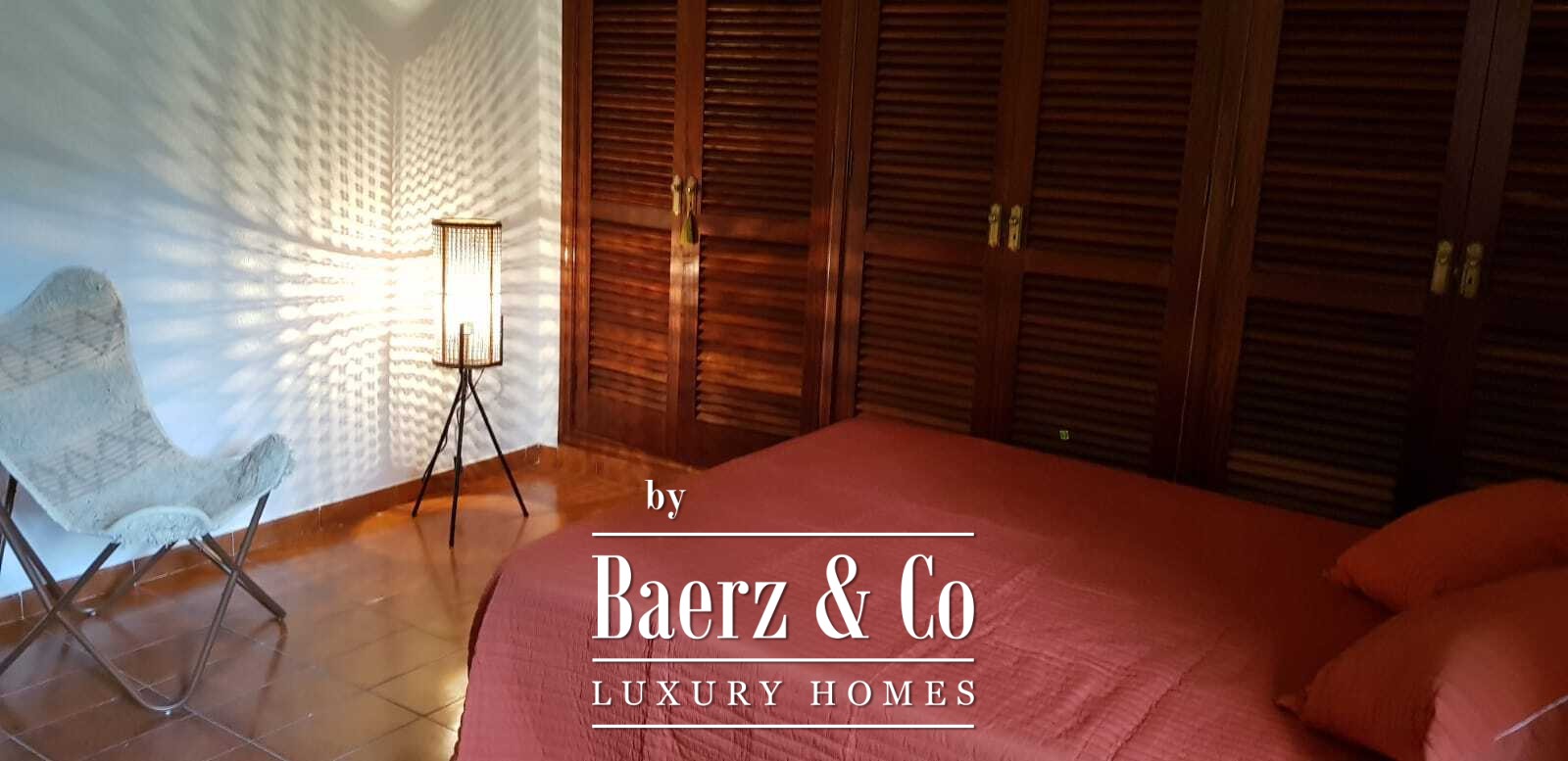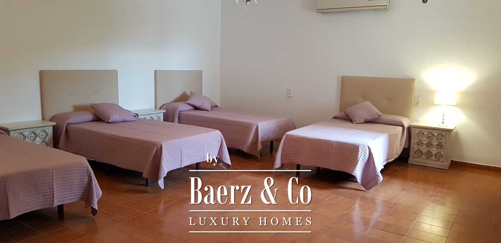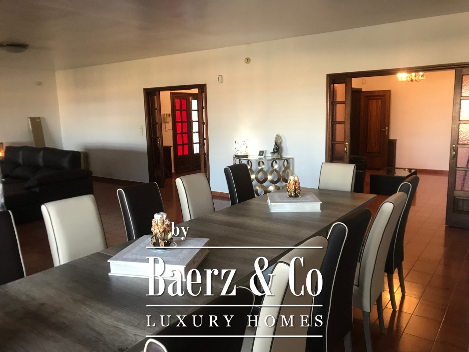 Inside, the layout flows around four generously proportioned double bedrooms and five full bathrooms, with an additional guest toilet for convenience. The main living area, a 100 m² expanse, moves seamlessly into a spacious kitchen and dining area, creating a natural rhythm for gatherings and quiet moments alike. The villa opens towards mature gardens and a swimming pool with a designated children’s area, further complemented by open and covered terraces for year-round enjoyment.