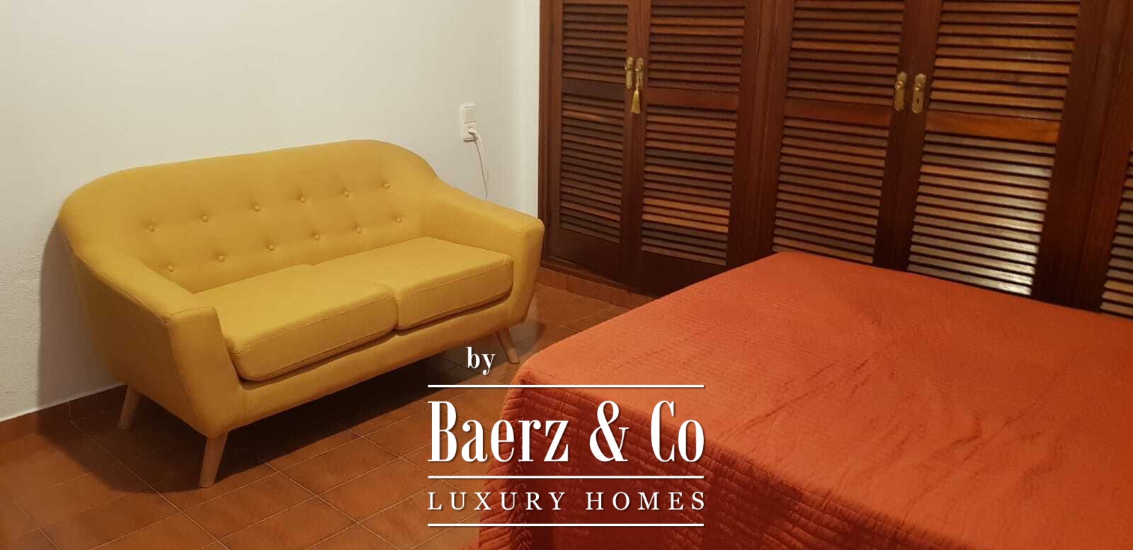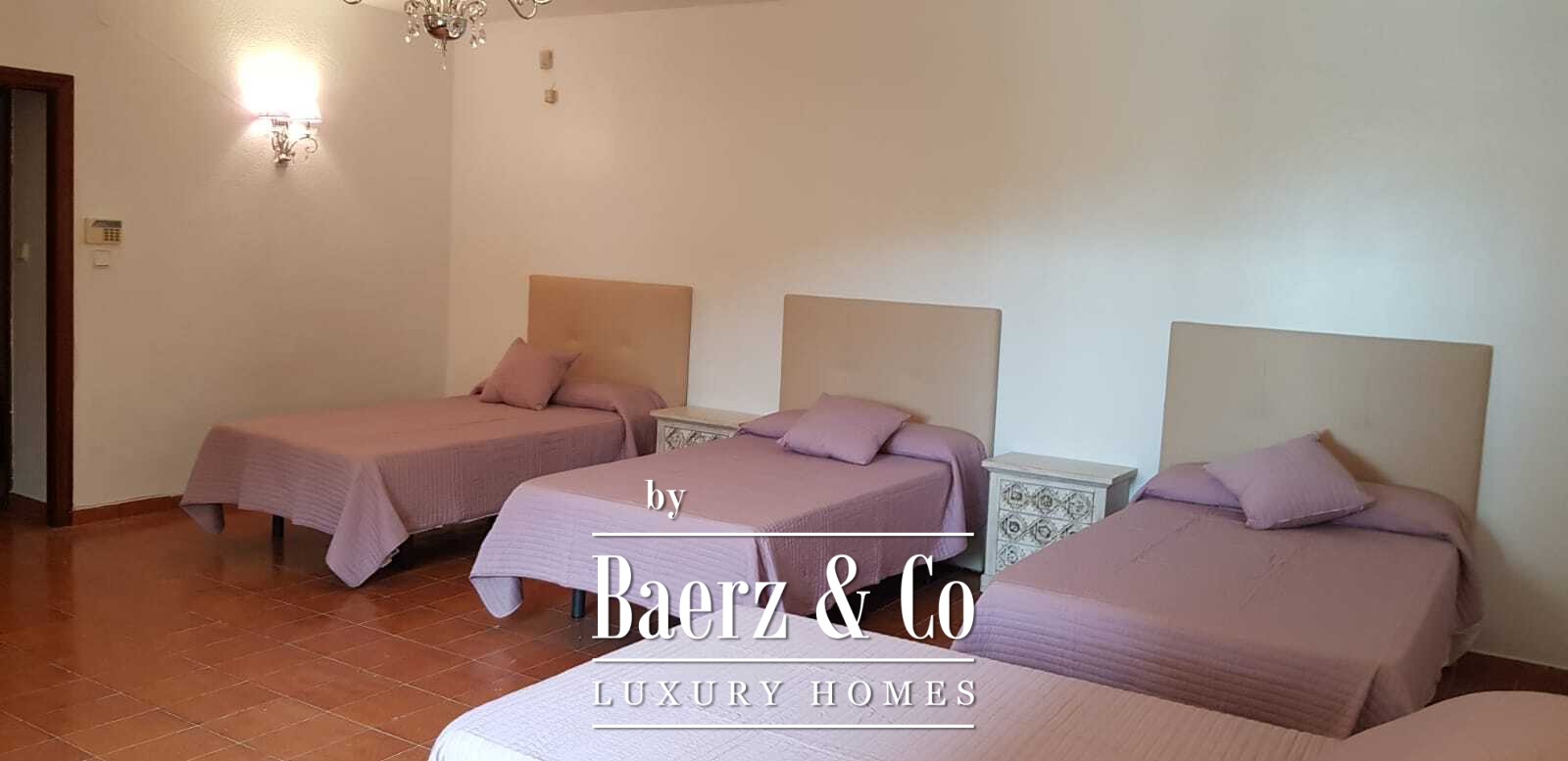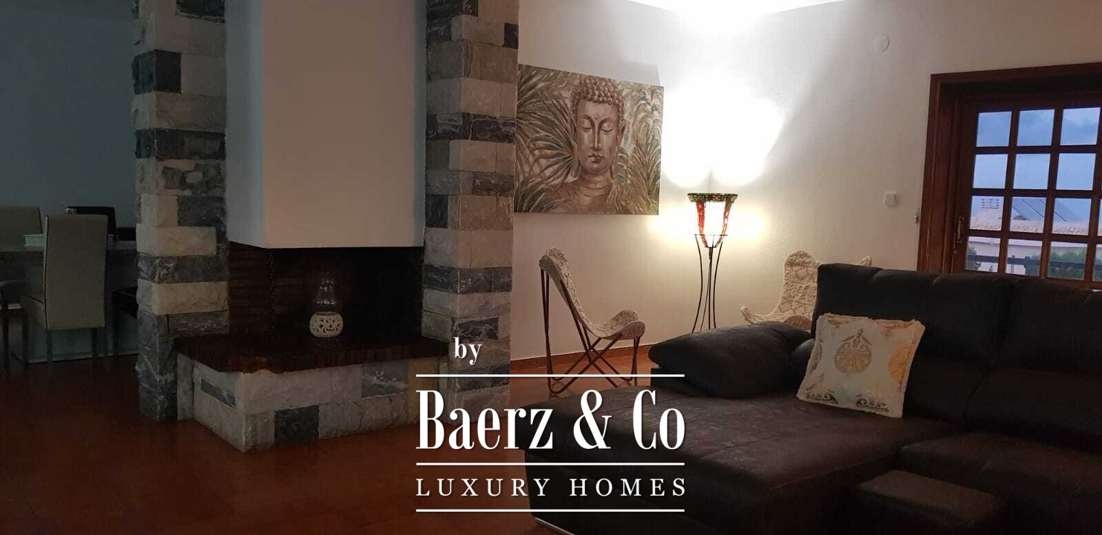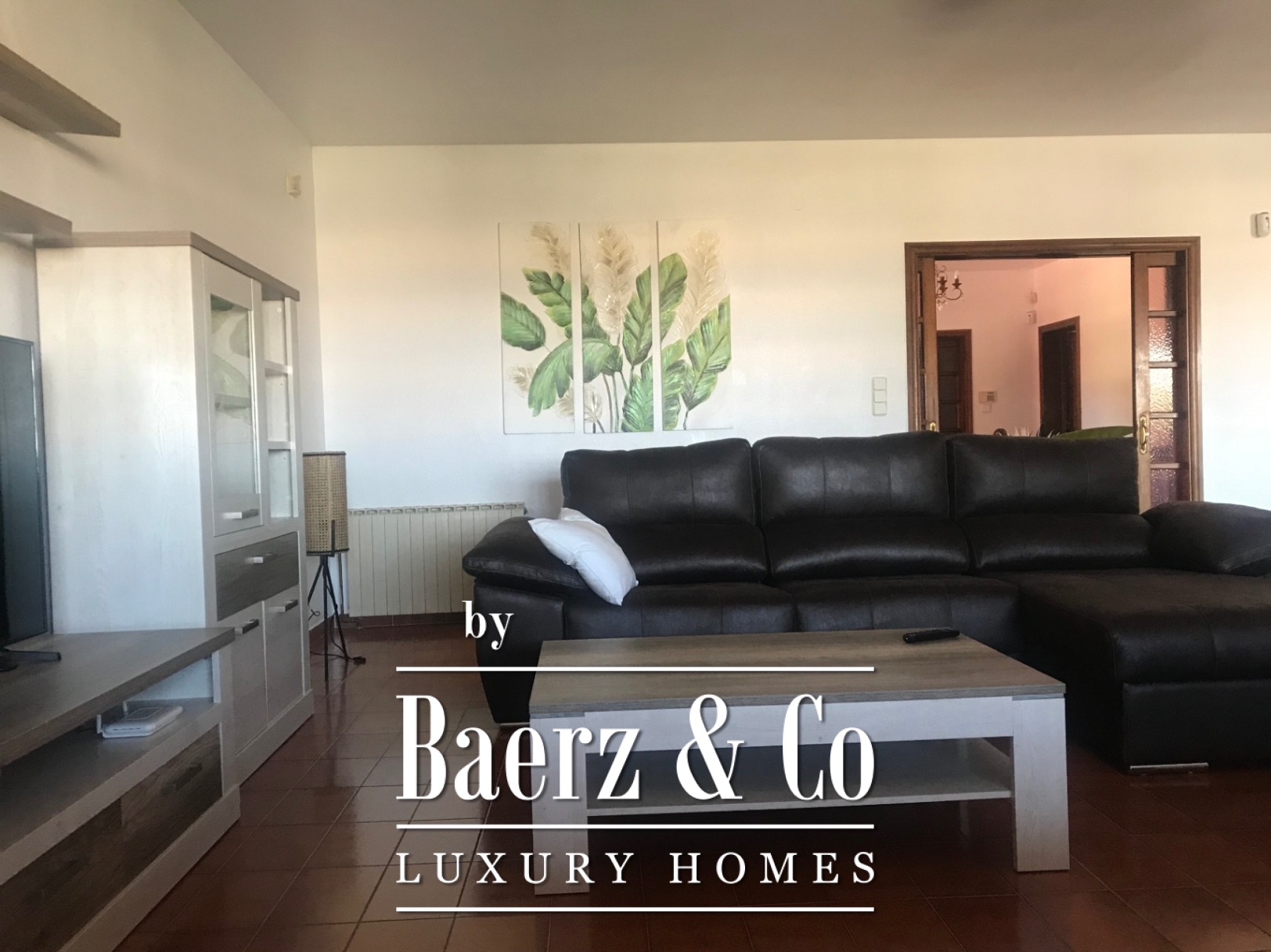 Inside, the layout flows around four generously proportioned double bedrooms and five full bathrooms, with an additional guest toilet for convenience. The main living area, a 100 m² expanse, moves seamlessly into a spacious kitchen and dining area, creating a natural rhythm for gatherings and quiet moments alike. The villa opens towards mature gardens and a swimming pool with a designated children’s area, further complemented by open and covered terraces for year-round enjoyment.