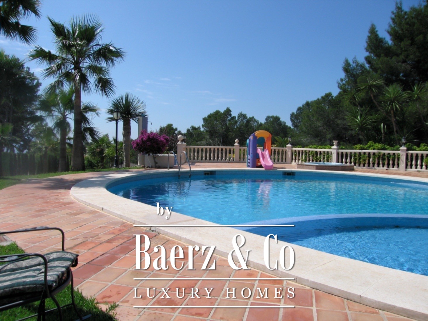 Villa La Nucía with forest views and a private garden embodies quiet elegance on the edge of a sprawling natural landscape, a five-minute drive from Benidorm. This villa, totalling 577 m², occupies a secluded plot of approximately 3,450 m² beside a large forest, granting a rare sense of privacy and space. The property is defined by its refined materials and thoughtful architecture, underscored by a complete redecoration and new furnishings as of September 2022.