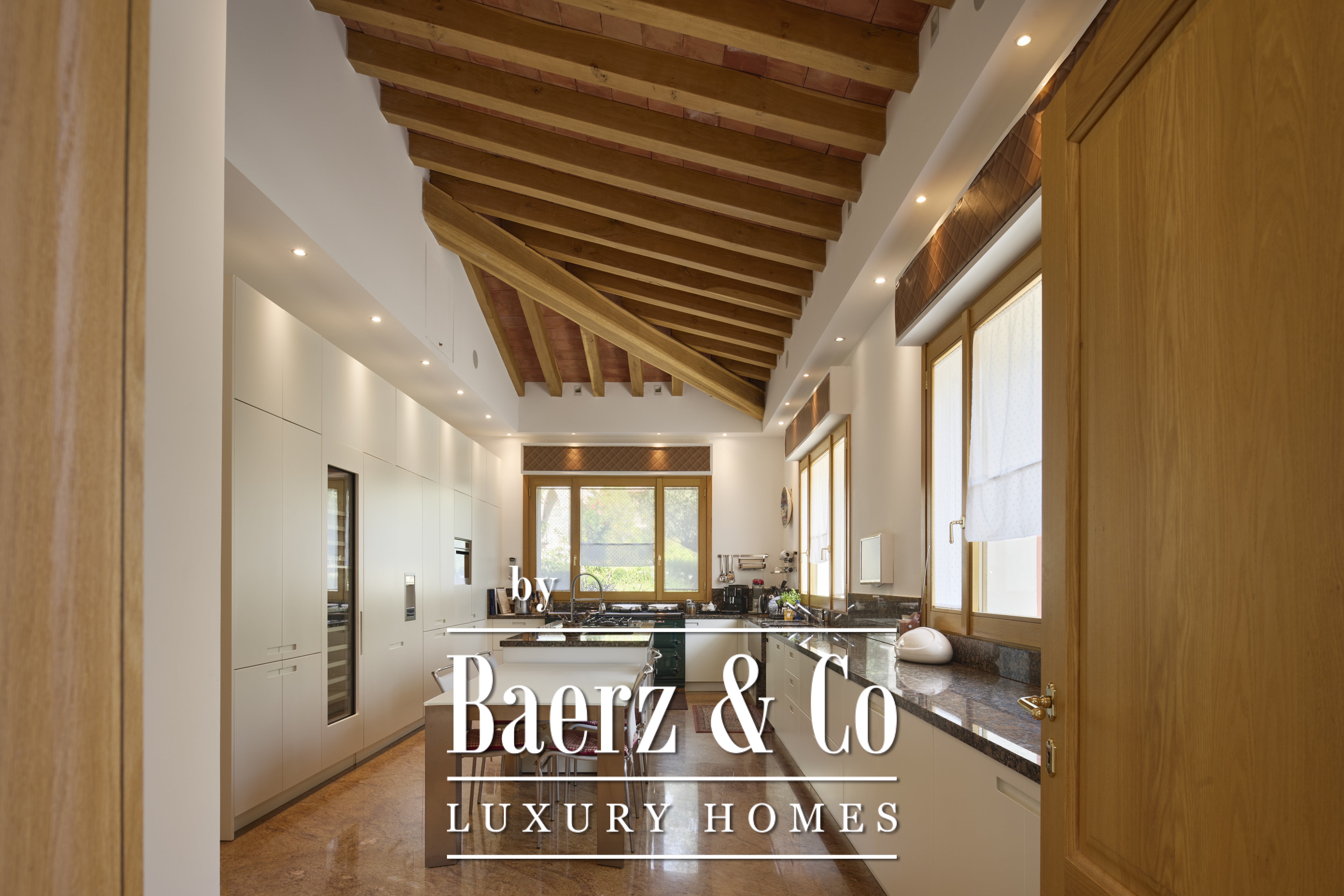 The estate also features a caretaker’s house, a fitness pavilion, and a **second adjoining property** with two large apartments. This additional property comes with planning permission to be converted into guest accommodations, a spa, or a gym.
