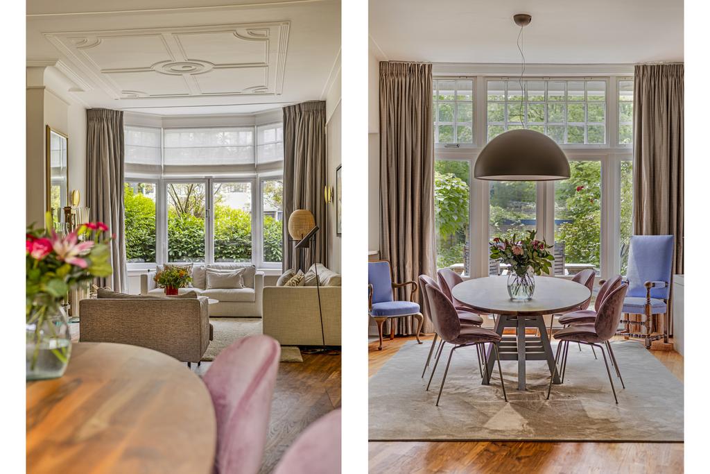 Layout: spacious entrance with beautiful granite floor. Hallway with spacious cupboard under the stairs and separate toilet. Very spacious and attractive living and dining room of approx. 46 m2 with a beautiful parquet floor, a wood-burning fireplace, a charming bay window at the front and patio doors to the garden. The luxurious, fully open Bulthaup kitchen was largely renovated in 2023 and is of course equipped with all the usual equipment.