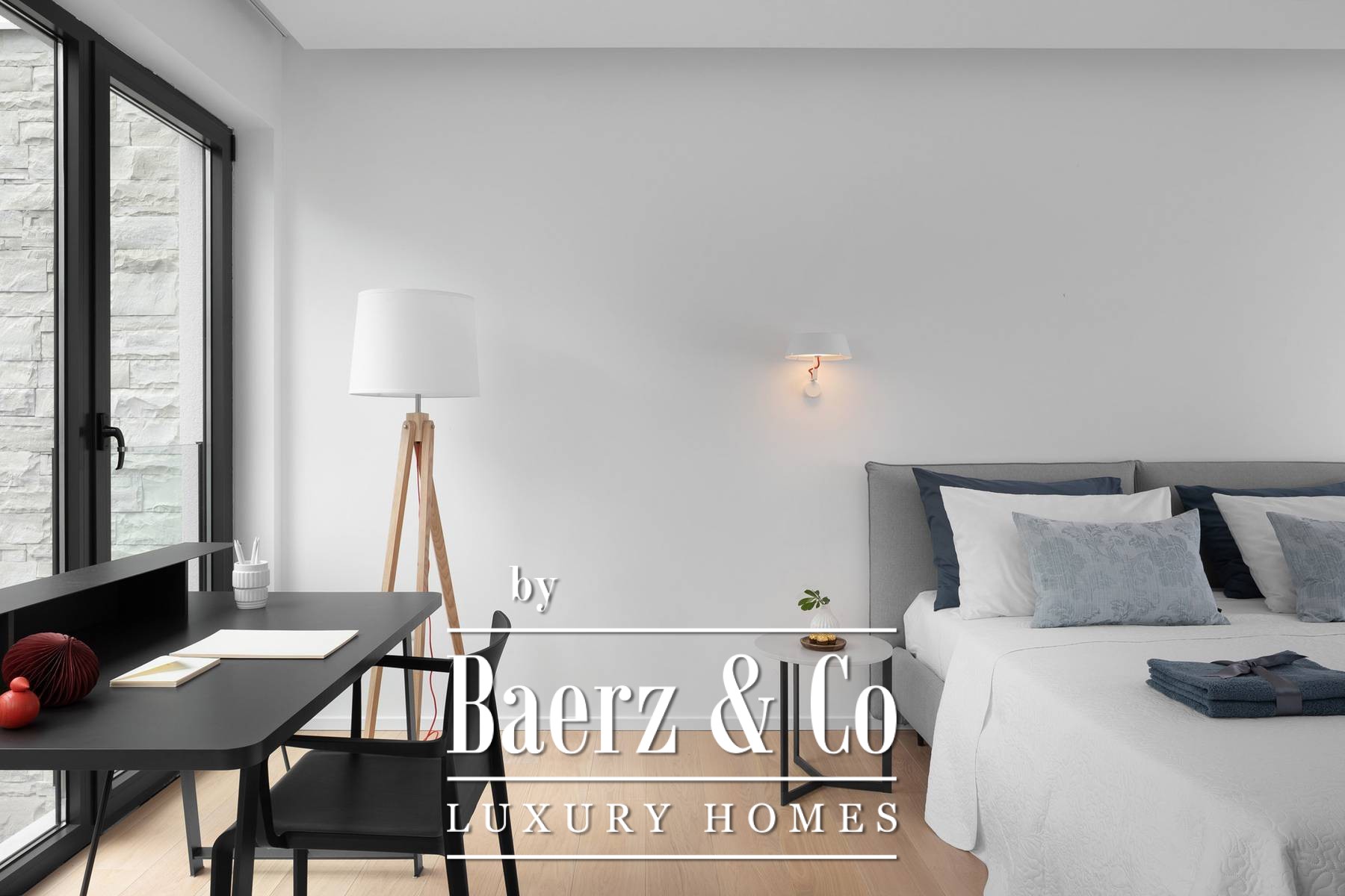 The ground floor bedroom with en-suite bath is complemented by three upper-level en-suite bedrooms, each with their own sense of space and openness through large glass portals. Entertaining is framed by the outdoor kitchen and grill, and morning sun moves across the terrace, making outdoor dining a daily ritual. The basement houses a gym and table tennis, offering both activity and retreat.