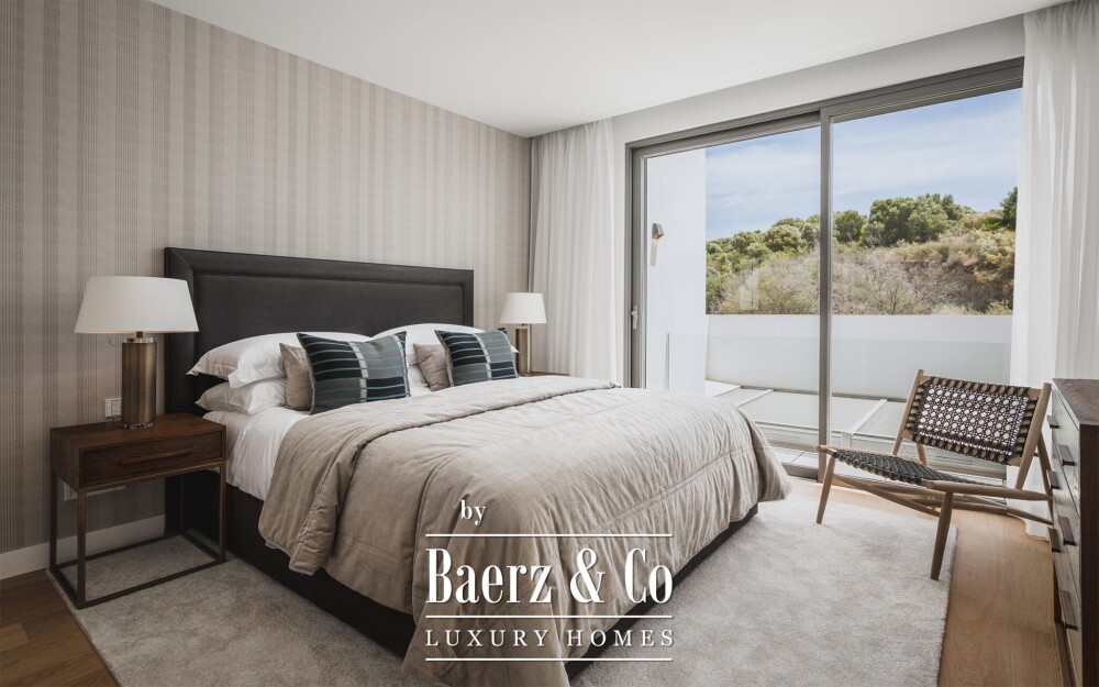 Villa Marbella in El Paraiso offers a tranquil and sophisticated setting among the Andalusian hills, surrounded by the exclusivity of a select gated community of just nine residences. This villa, with 626 m² of living space set upon an 808 m² plot, is designed for those seeking seclusion and easy proximity to Marbella, Estepona, and the coast. Villa Marbella in El Paraiso presents clean lines and generous south to southeast orientation, ensuring interiors are flooded with natural light. Floor-to-ceiling glazing connects open-plan living spaces and a sculptural, high-end German kitchen to terraces, private landscaped gardens, and a personal swimming pool. Each bedroom features en-suite bathrooms, elegant wood flooring, and muted, contemporary finishes—combining Villeroy & Boch fixtures, grey marble tiling, and thoughtful lighting. The residence privileges comfort and refinement, with amenities such as underfloor heating, hot and cold air conditioning, home automation, and a fireplace. Two covered parking spaces, intelligent movement sensors, and a multi-purpose basement—ideal for a gym or cinema—complete the offering. The surrounding El Paraiso enclave is serviced by renowned golf courses, international schools, boutiques, and fine dining, supporting a pace of life defined by discretion and access.