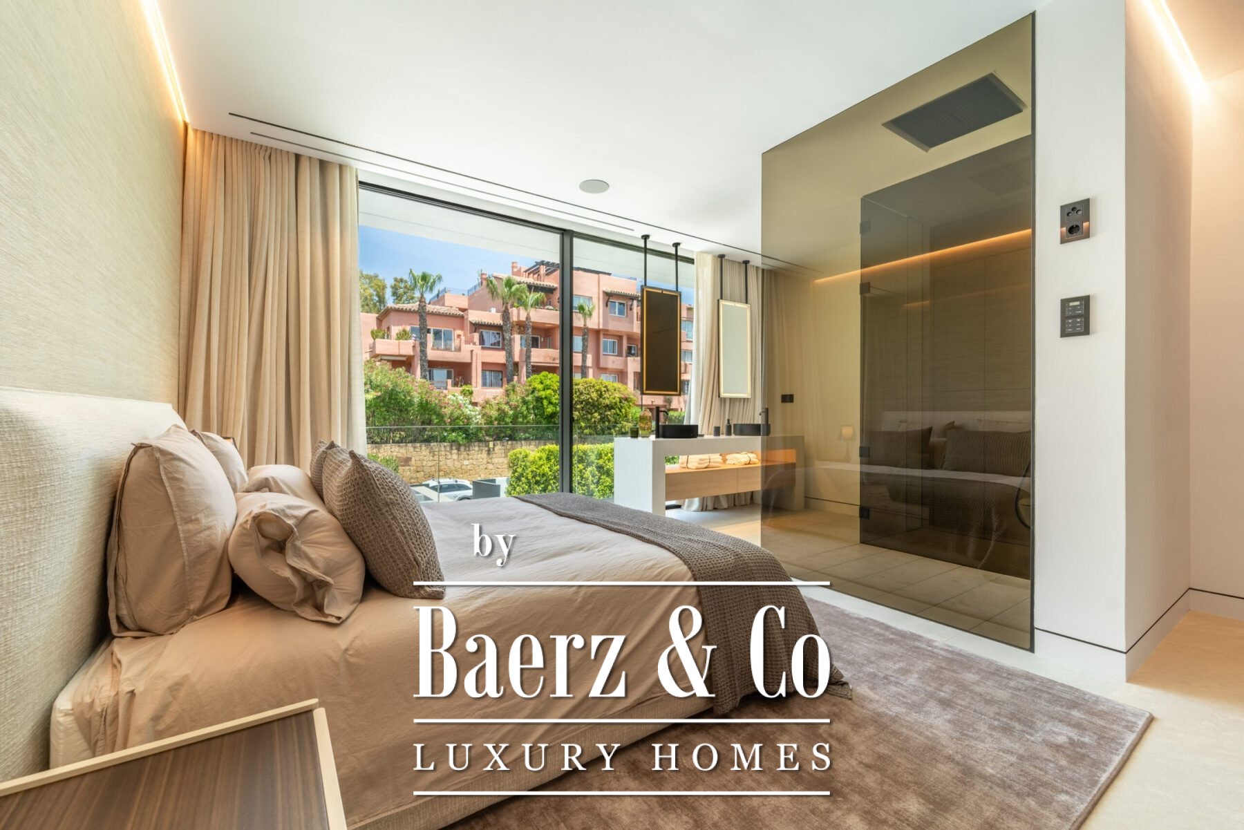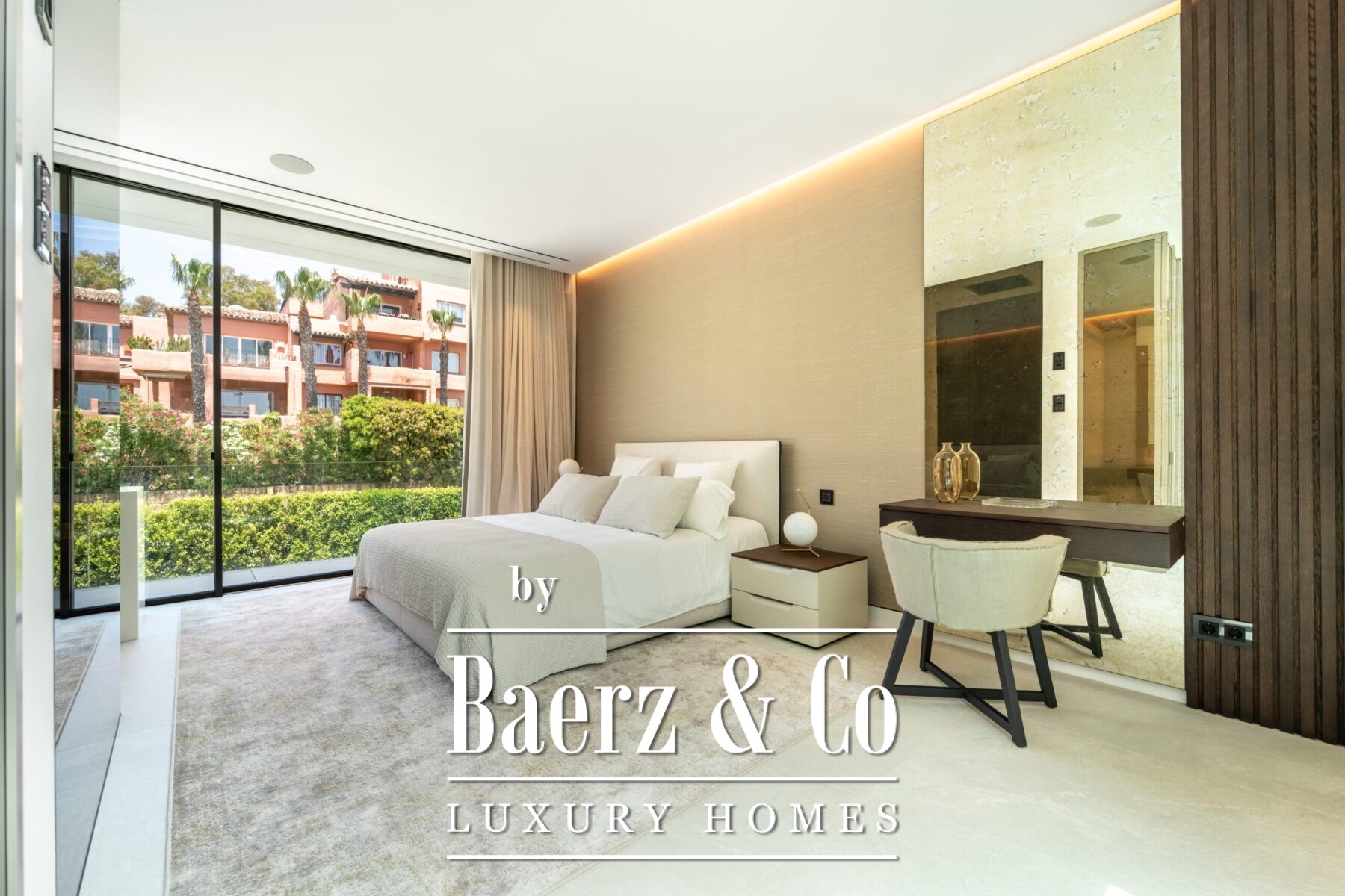 As you enter the property, you’ll find yourself surrounded by beautifully landscaped gardens covering 1.100 square meters. These gardens offer a peaceful atmosphere, with two private pools where you can relax and enjoy the stunning views of the Mediterranean Sea. The villa’s design allows you to easily move between indoor and outdoor spaces, making the most of Marbella's wonderful weather all year round.