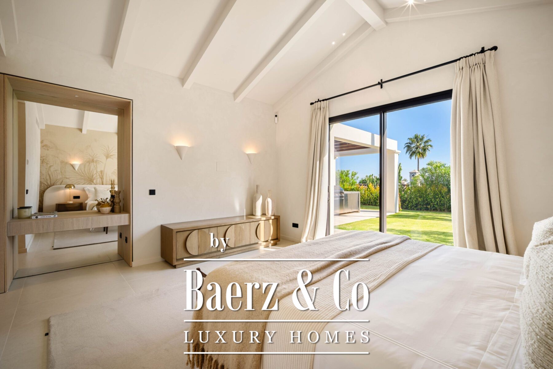 The villa’s four bedrooms and four bathrooms offer quiet reassurance of privacy and comfort. The primary suite opens onto lush manicured gardens, where outdoor living takes on new meaning with a sunken lounge, outdoor kitchenette, barbecue, and multiple spaces dedicated to relaxation or entertaining. A peaceful courtyard and water feature provide further retreat, while features such as A/C, alarm, underfloor heating, and a fireplace offer year-round comfort. This property’s proximity to golf courses, amenities, and the sea shapes daily rhythm, balancing seclusion with connection—all in one of Marbella’s most sought-after settings. For those considering a luxury villa for sale in Marbella, this address unites refined living and coastal tranquility.