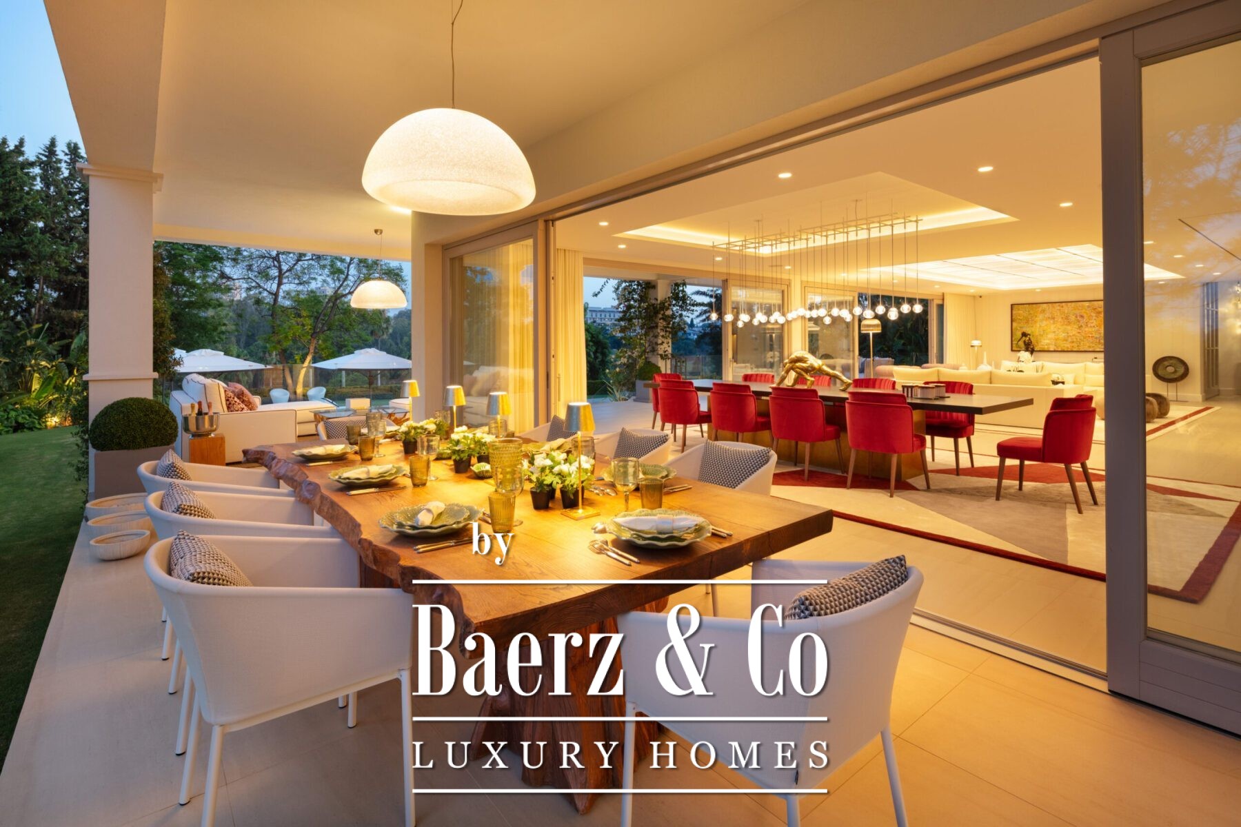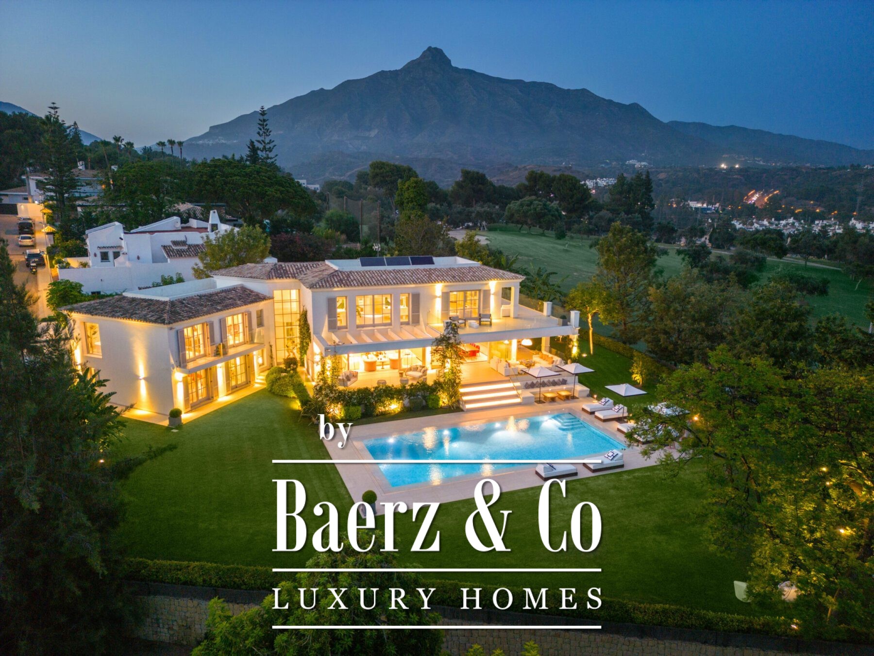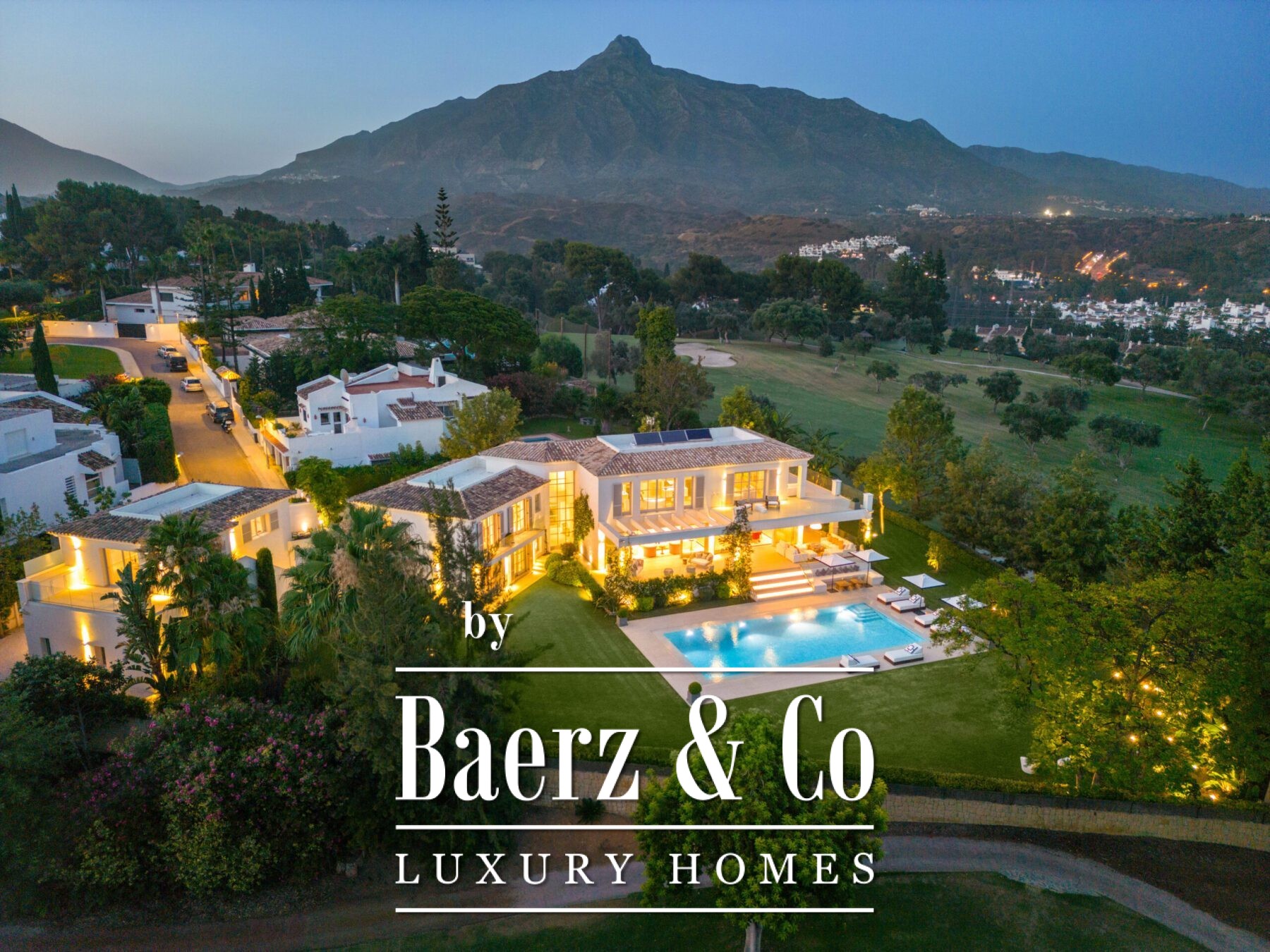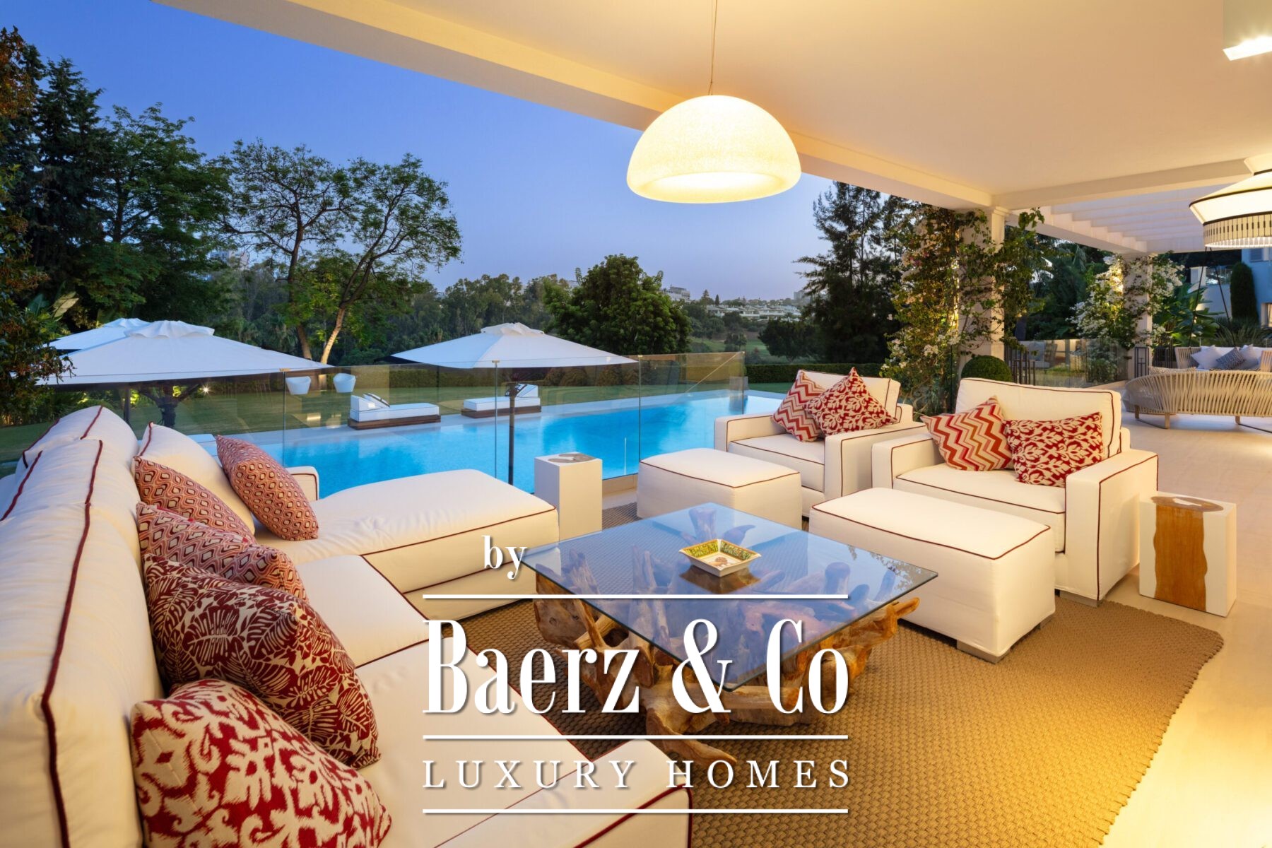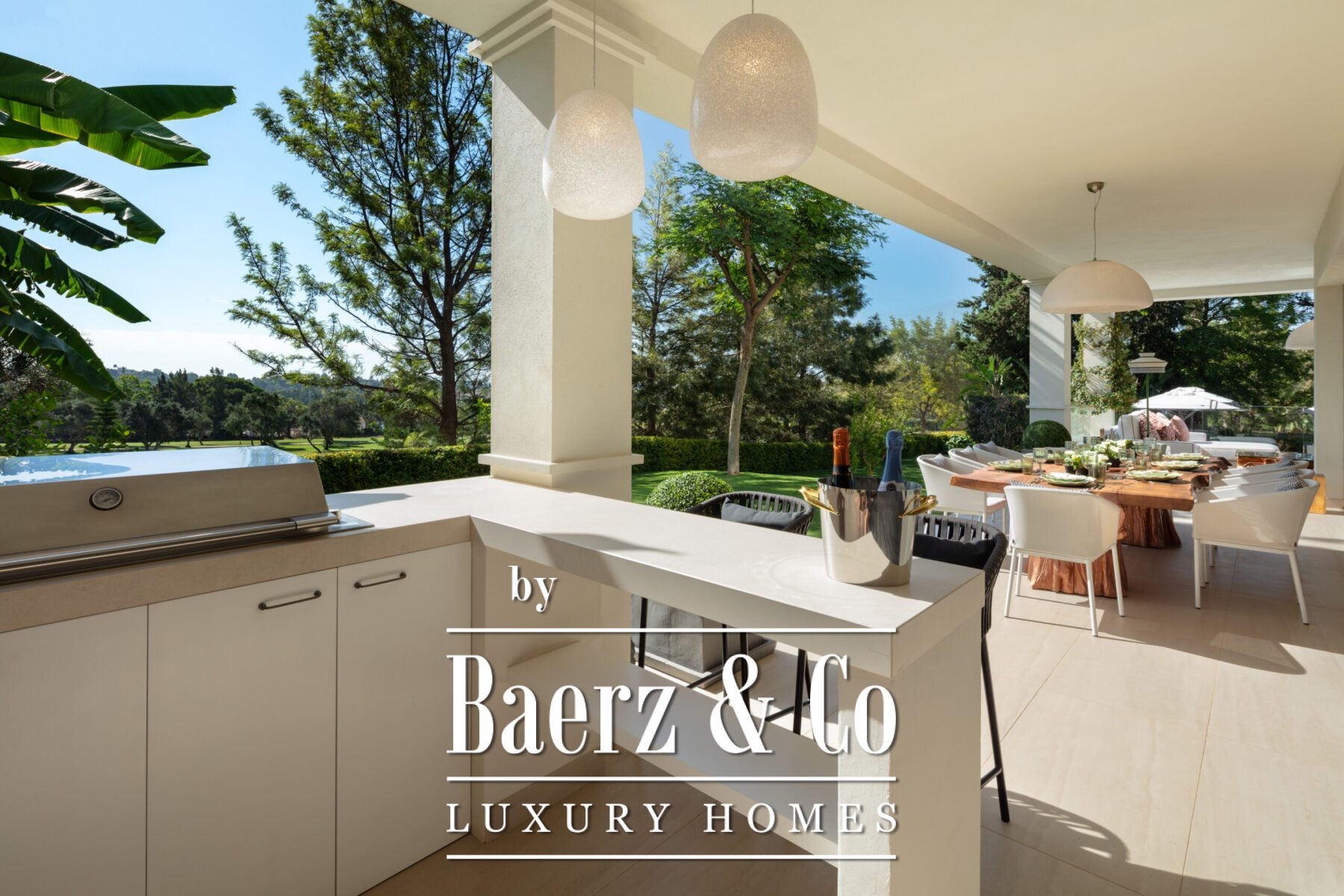 The villa’s connection to its 2,349 m² plot is articulated through mature gardens and spacious terraces, framing year-round alfresco living under Marbella’s luminous skies. Sweeping golf course and mountain views, along with amenities such as a private pool, outdoor kitchenette, BBQ, two-car garage, and 24-hour security, define a lifestyle of understated refinement. The proximity to golf, local amenities, and the sea underlines the enduring appeal of this luxury villa for sale in Marbella.