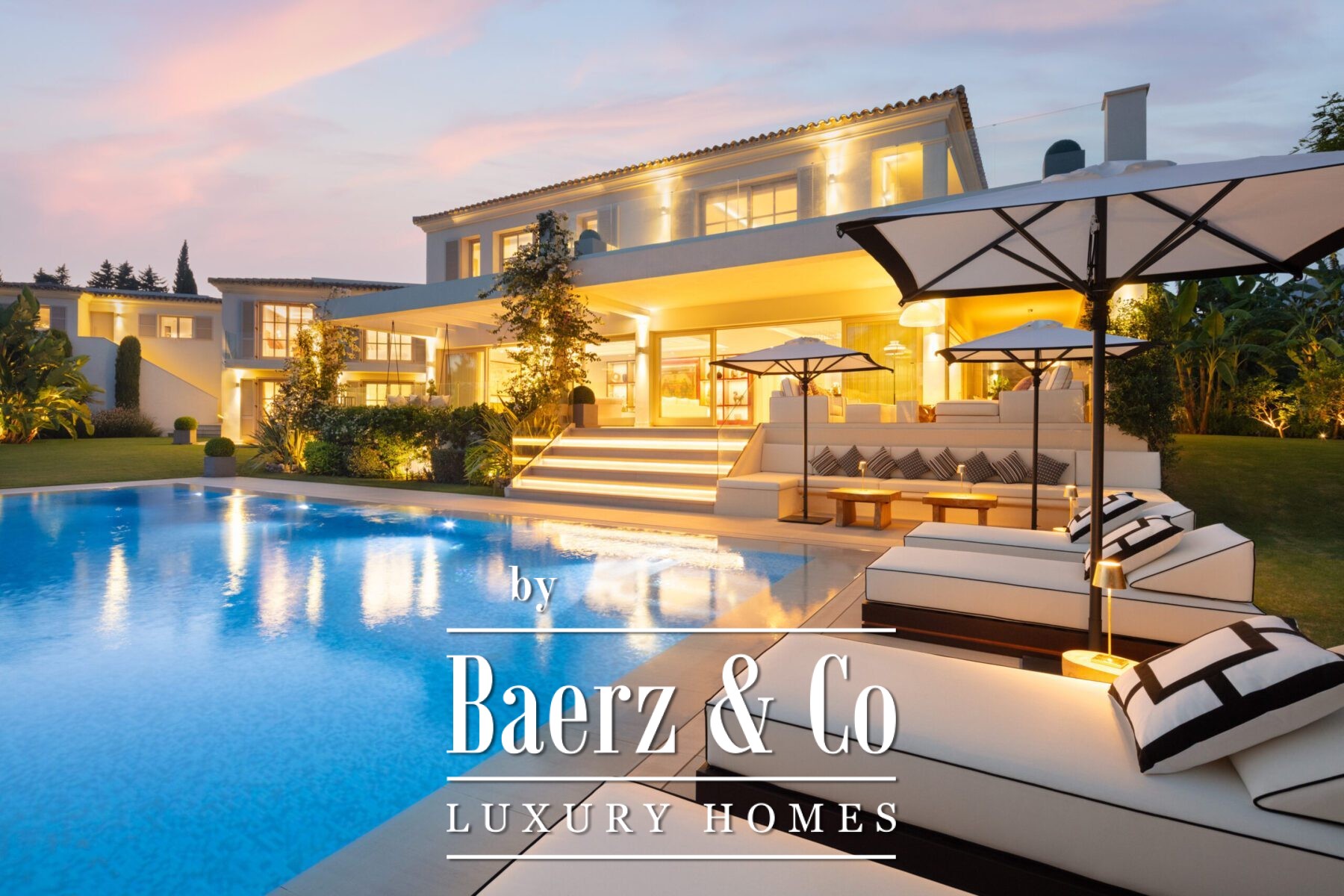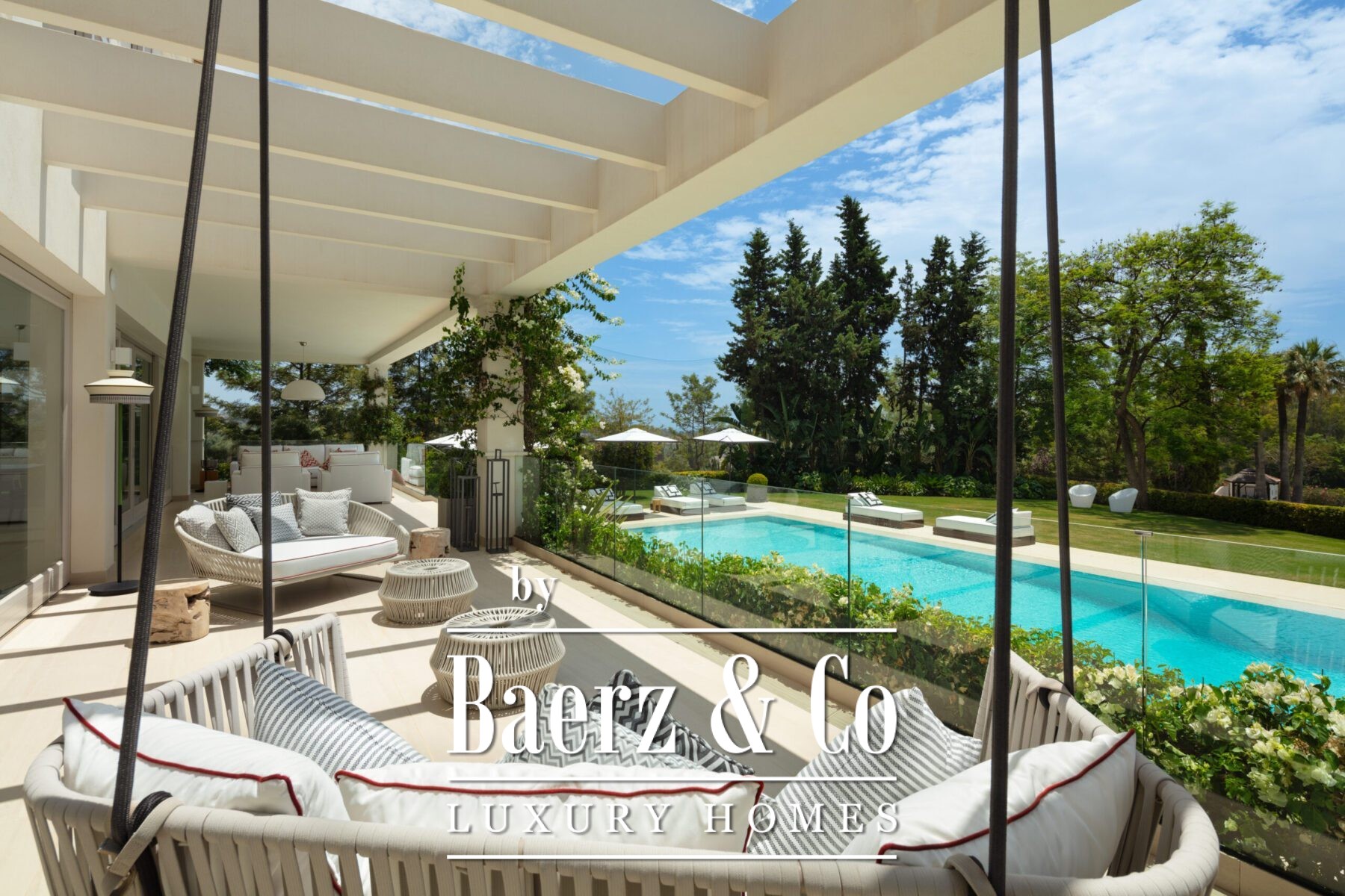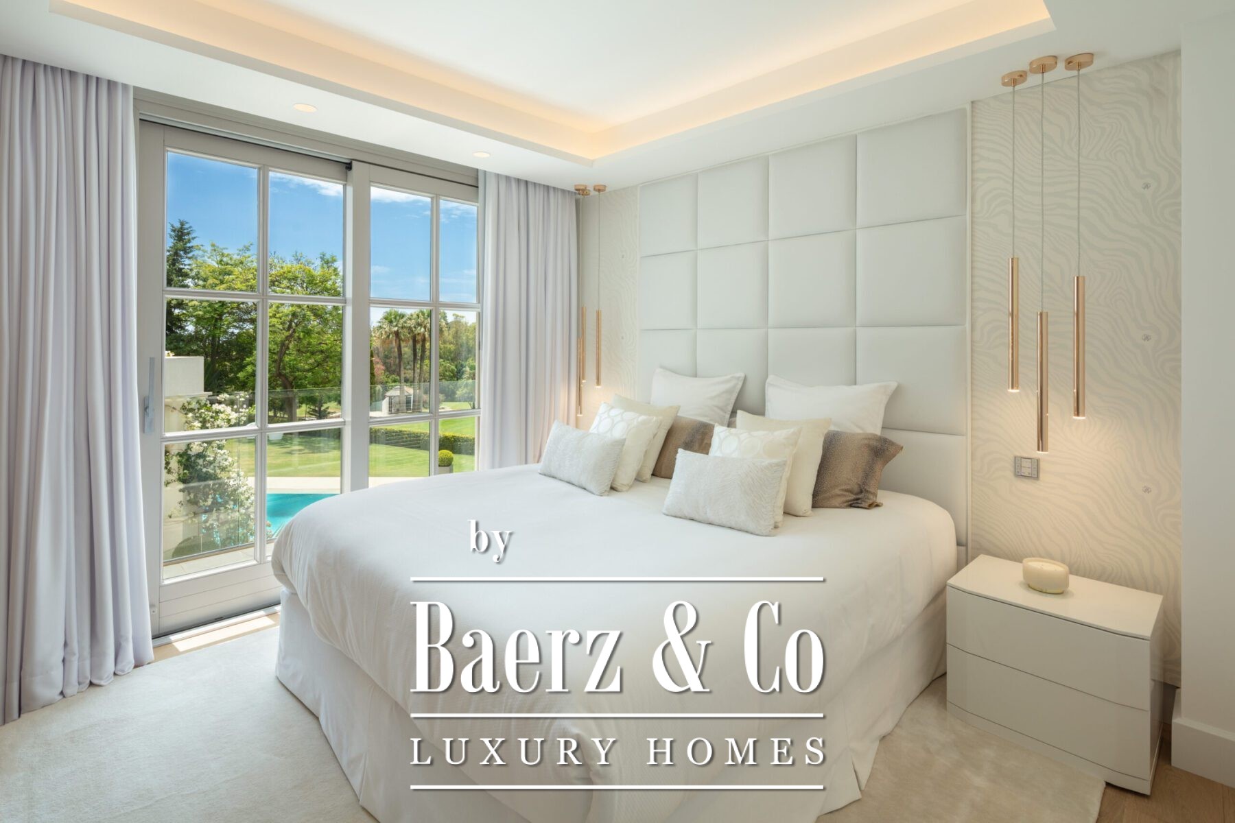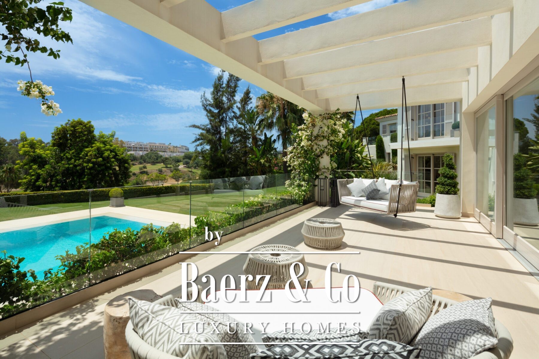 The villa’s connection to its 2,349 m² plot is articulated through mature gardens and spacious terraces, framing year-round alfresco living under Marbella’s luminous skies. Sweeping golf course and mountain views, along with amenities such as a private pool, outdoor kitchenette, BBQ, two-car garage, and 24-hour security, define a lifestyle of understated refinement. The proximity to golf, local amenities, and the sea underlines the enduring appeal of this luxury villa for sale in Marbella.