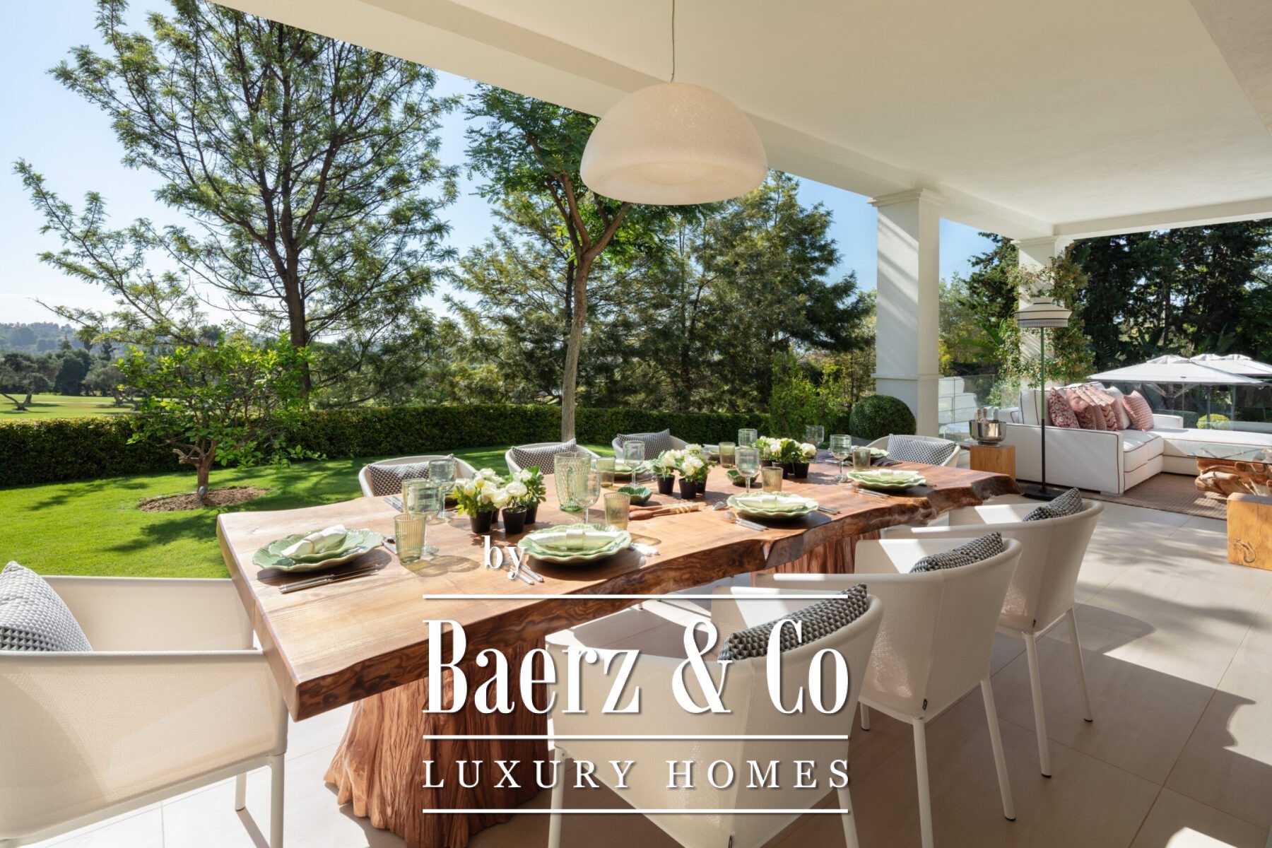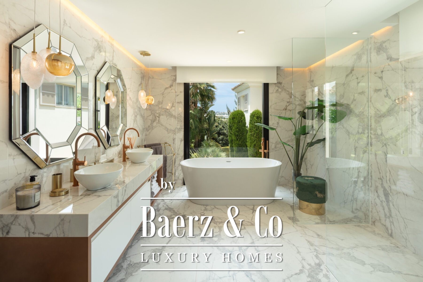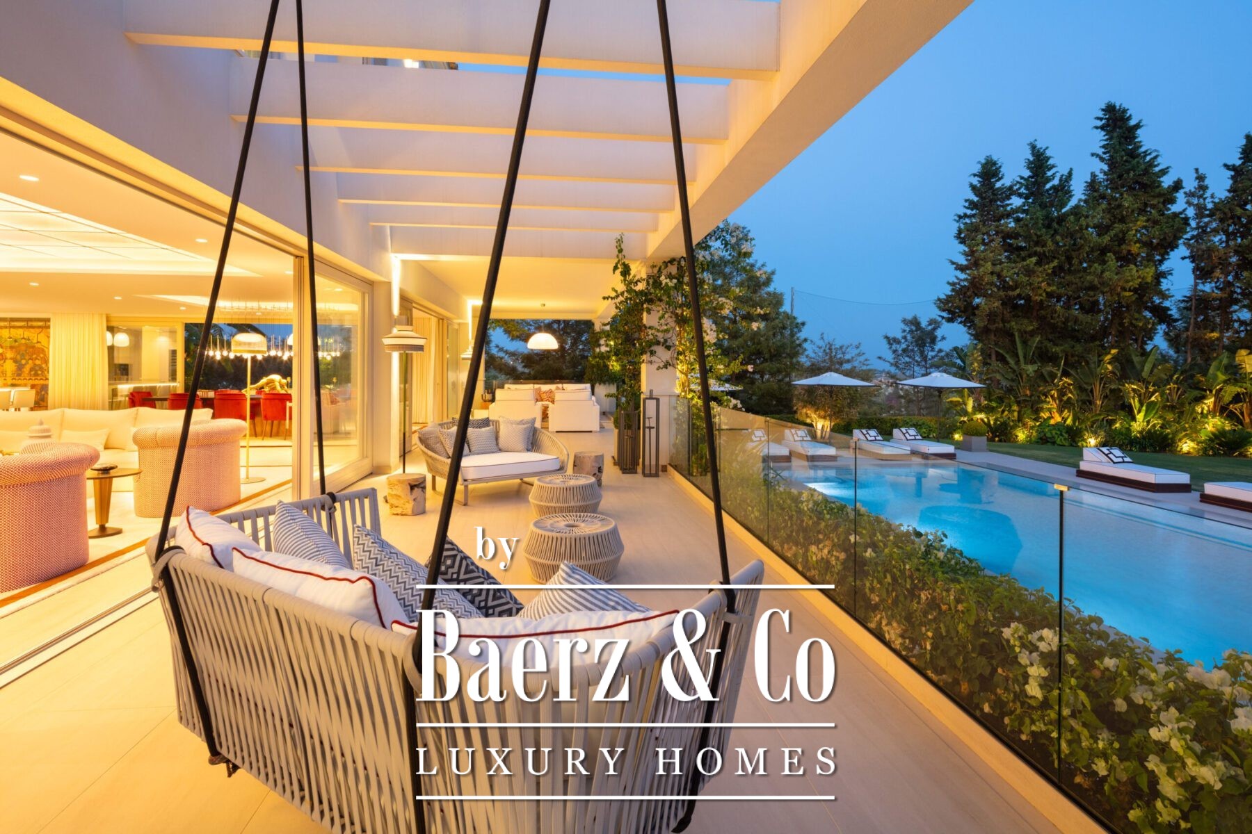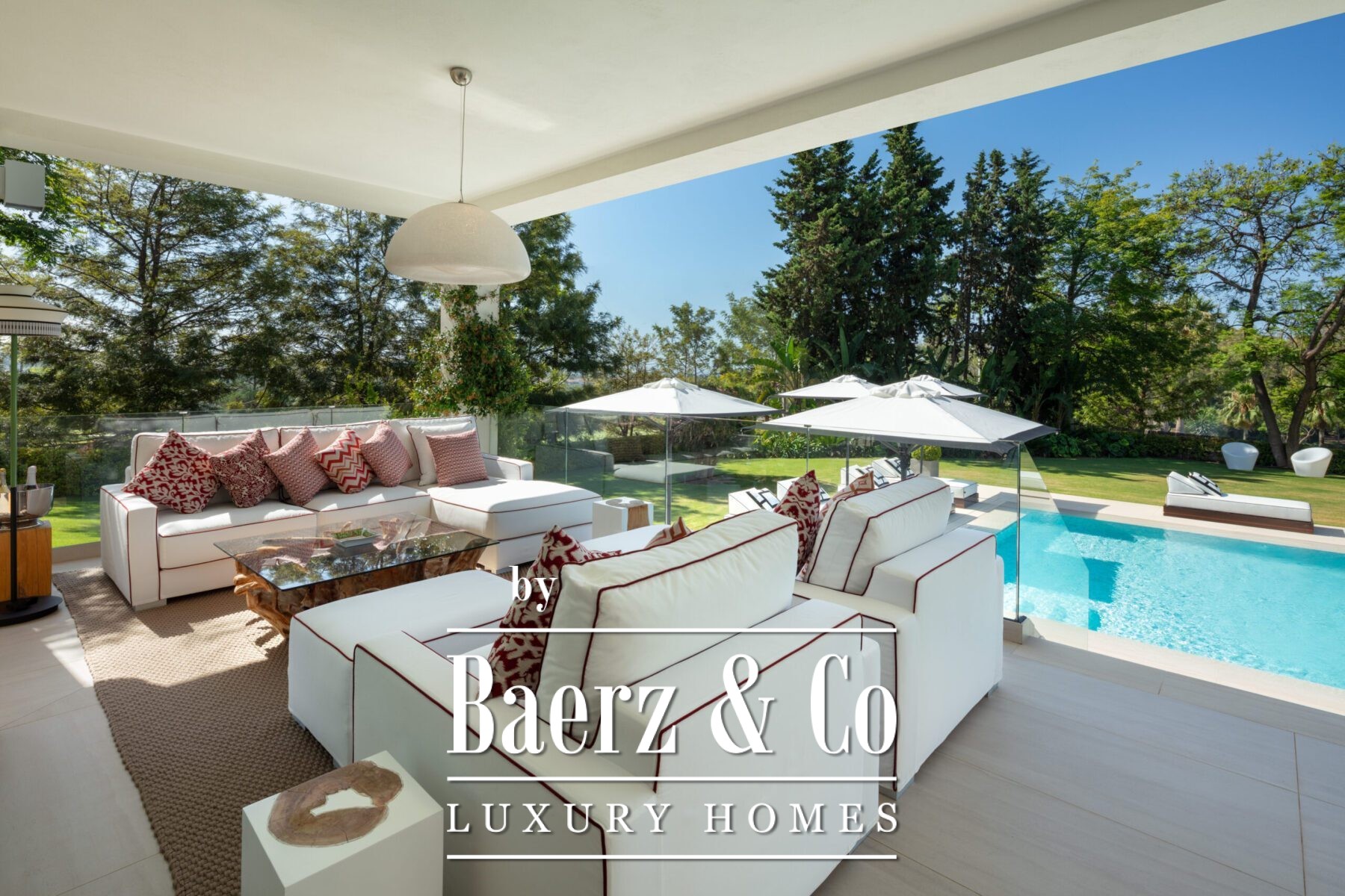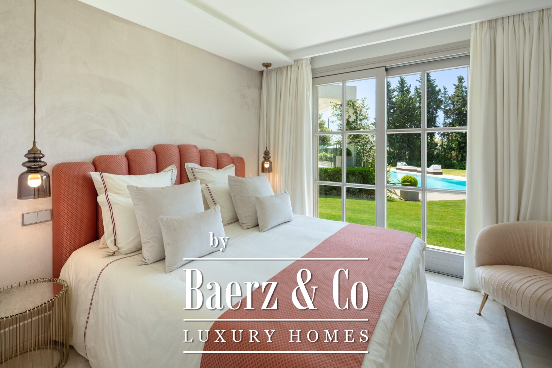 The villa’s connection to its 2,349 m² plot is articulated through mature gardens and spacious terraces, framing year-round alfresco living under Marbella’s luminous skies. Sweeping golf course and mountain views, along with amenities such as a private pool, outdoor kitchenette, BBQ, two-car garage, and 24-hour security, define a lifestyle of understated refinement. The proximity to golf, local amenities, and the sea underlines the enduring appeal of this luxury villa for sale in Marbella.