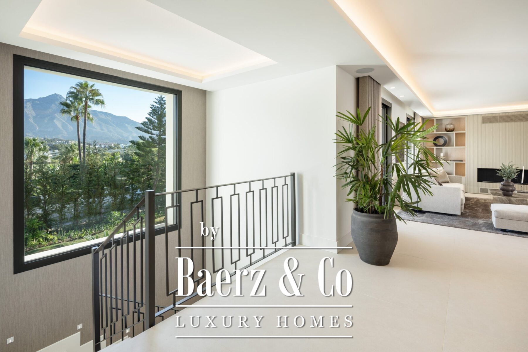 A captivating villa for sale located in the prestigious Nueva Andalucia Las Brisas, an area renowned for its stunning views of La Concha mountain and the Mediterranean Sea. This luxurious property, designed by a renowned architect firm exemplifies modern Scandinavian elegance blended with high-end comfort.
