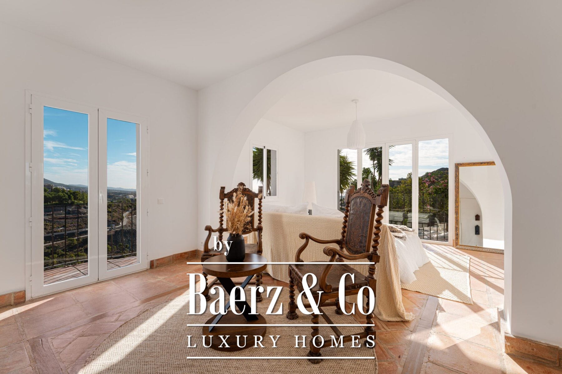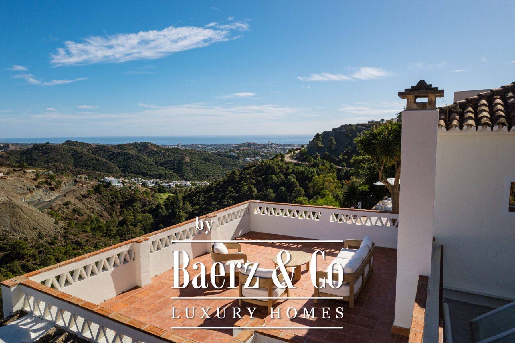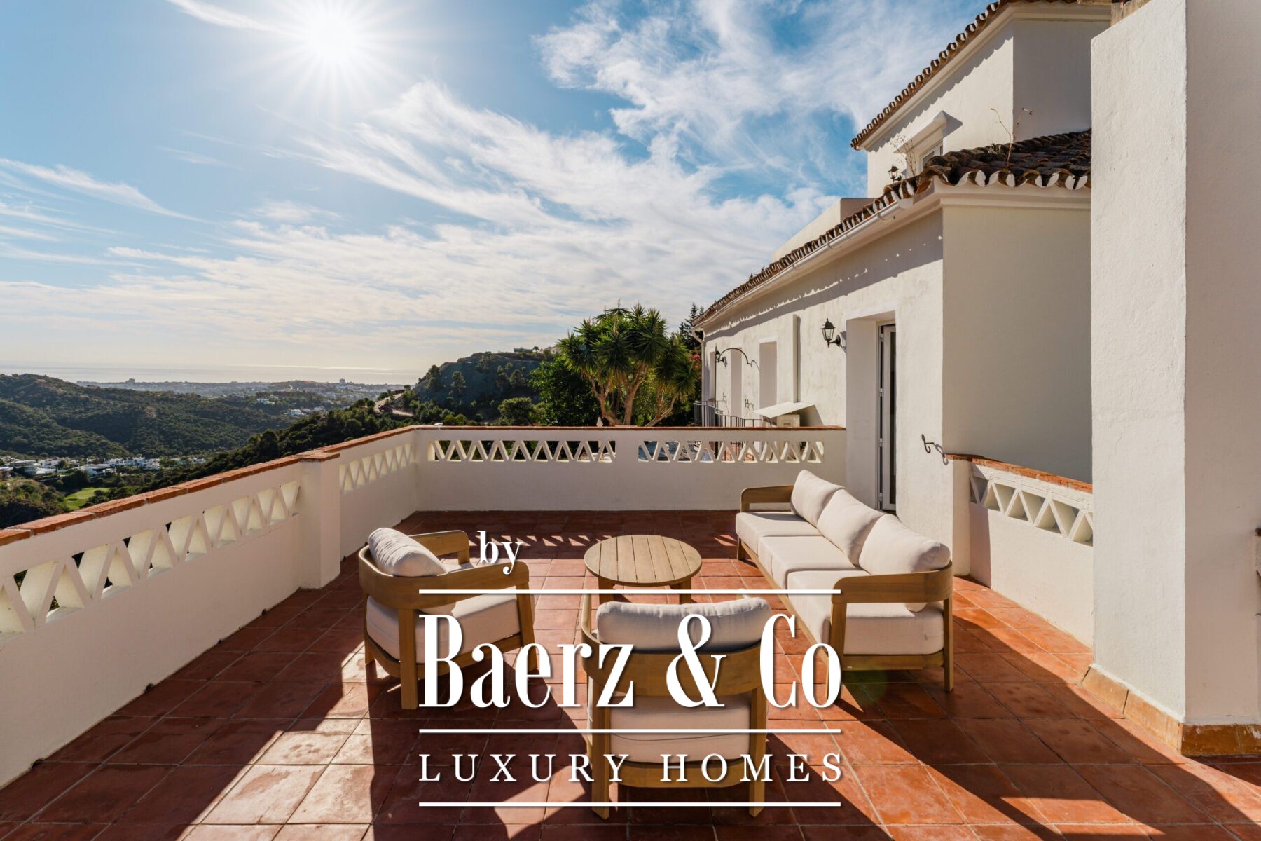 Villa El Madroñal for sale in Marbella offers a distinctive blend of Andalusian architecture and contemporary comfort within the private enclave of El Madroñal 2, Benahavís. This six-bedroom, five-bathroom residence spans 531 m², elegantly positioned on a 4,795 m² plot, ensuring panoramic views of the Mediterranean Sea and mountains from every level.