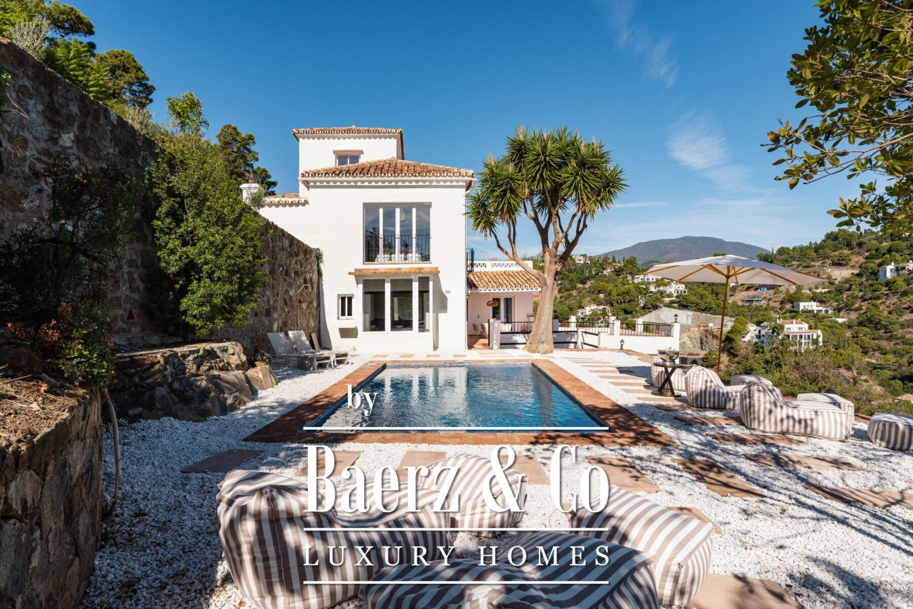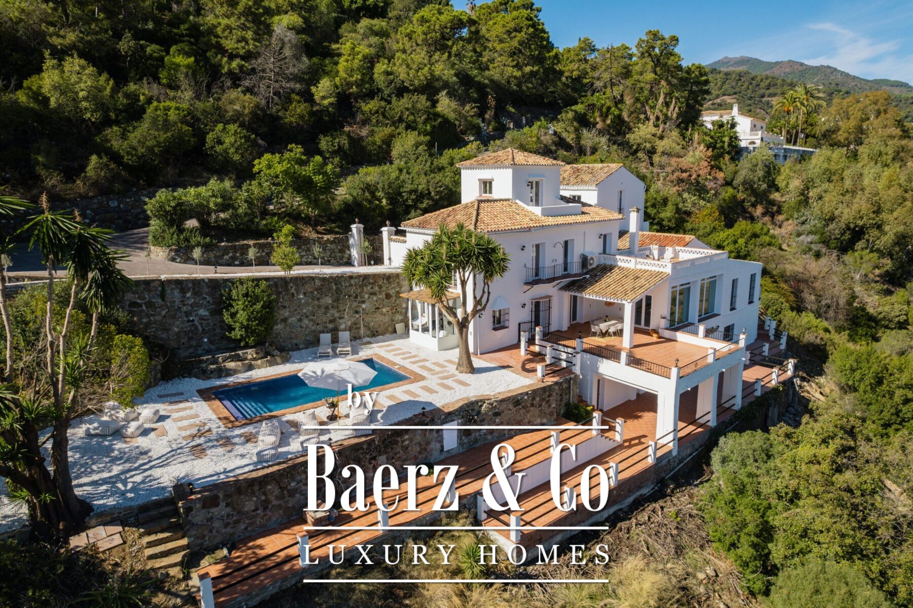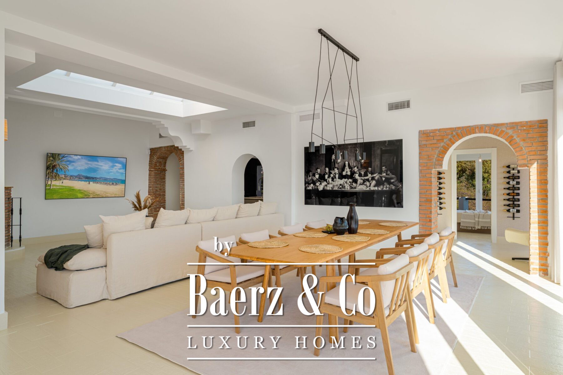 Villa El Madroñal for sale in Marbella offers a distinctive blend of Andalusian architecture and contemporary comfort within the private enclave of El Madroñal 2, Benahavís. This six-bedroom, five-bathroom residence spans 531 m², elegantly positioned on a 4,795 m² plot, ensuring panoramic views of the Mediterranean Sea and mountains from every level.