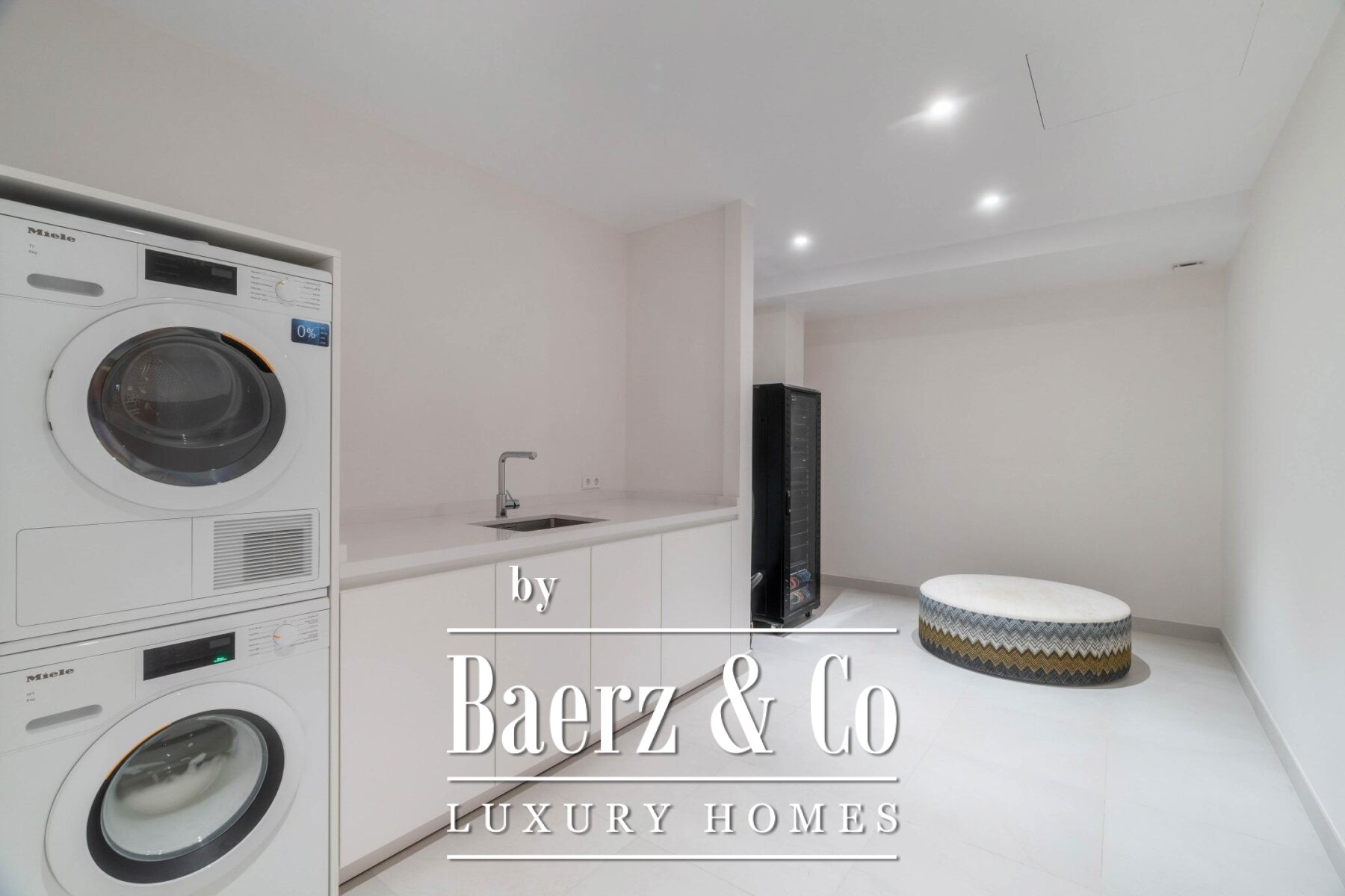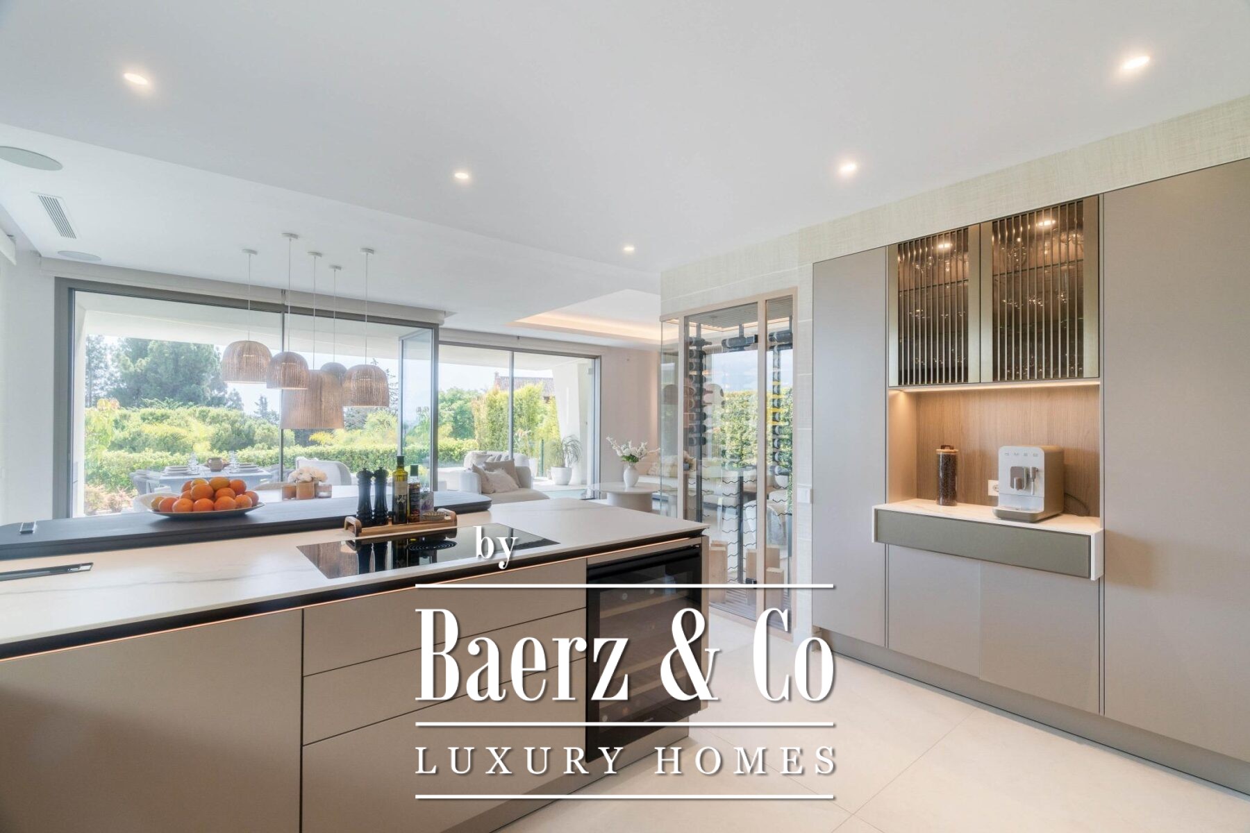 Generous living areas connect to a covered terrace designed for seamless indoor-outdoor living. The custom rooftop solarium, complete with a private plunge pool, opens up panoramic views over the Golf Valley and the iconic La Concha mountain. A private elevator links each of the four levels, allowing effortless access throughout, while the fully equipped Siematic kitchen invites convivial gatherings.