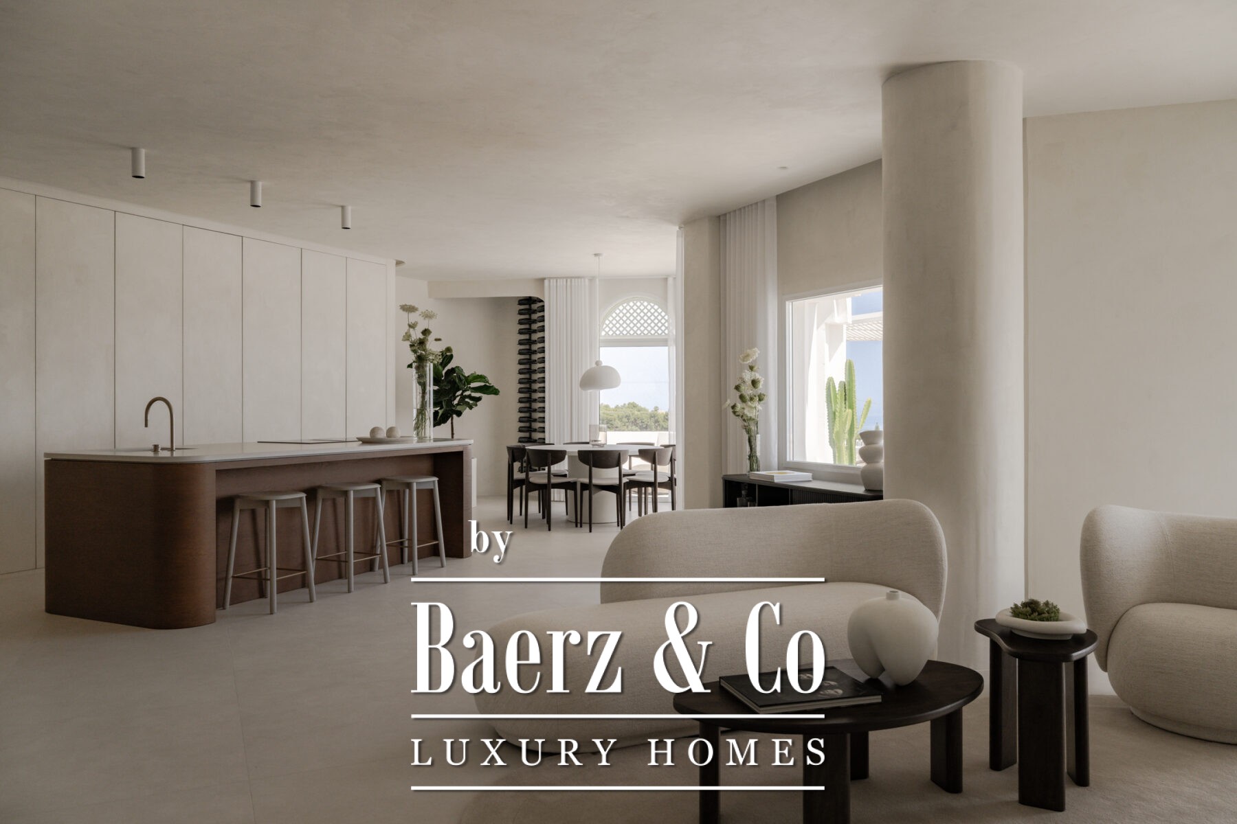 Penthouse Marbella with sea views offers a refined Mediterranean experience on the coveted Golden Mile. This fully renovated penthouse is set within a prestigious gated community and features three en-suite bedrooms, each designed for comfort and privacy. Impeccable finishes and a minimalist, muted palette define the interiors, creating an understated atmosphere of elegance.
