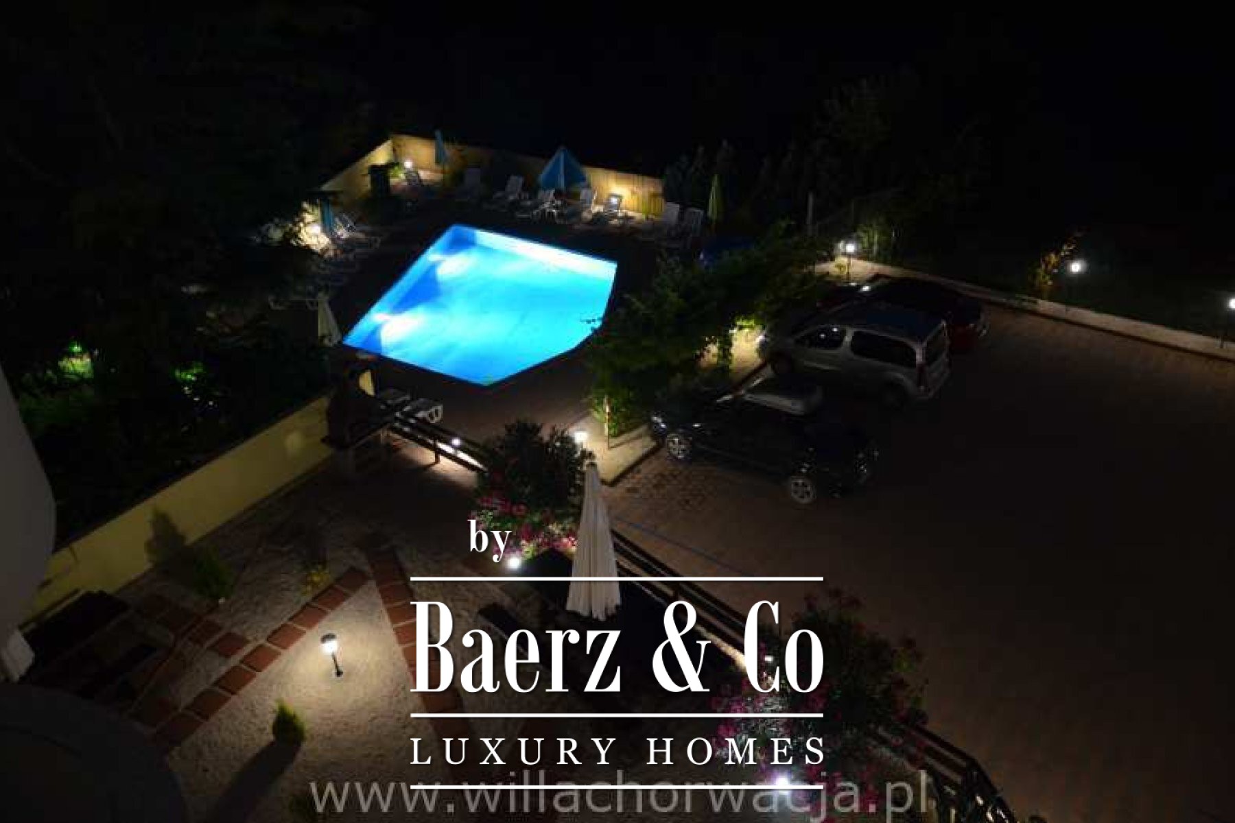 Outdoors, the property’s 1,245 m² landscaped garden creates a sense of retreat, anchored by a 50 m² swimming pool. There is ample parking for 13 vehicles, making the town and sea easily accessible. The building’s structure includes a dedicated laundry facility and a reception, while a penthouse crowns the top floor, offering additional space or privacy. Townhouse Medulin is positioned as an investment for those seeking to engage in rental hospitality, with all units fully equipped and categorized as 3-star residences.