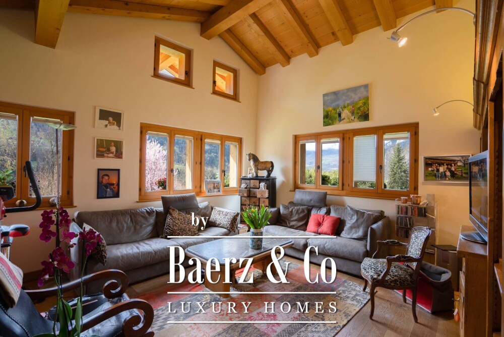 1 relaxation room, 1 studio (~30sqm) with garden, cellar, laundry. This chalet, built on a plot of 1763 sqm offers you the freedom to enjoy its large spaces or to build another chalet. Photovoltaic panels will be installed this spring and finally, 4 outdoor parking spaces complete this exceptional property. Available as a secondary recidence for swiss or B/C permit.
