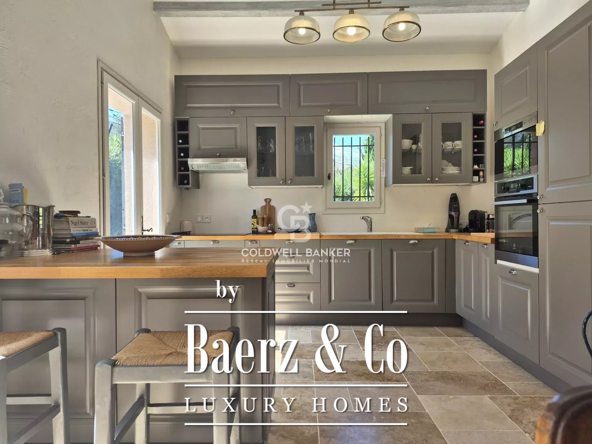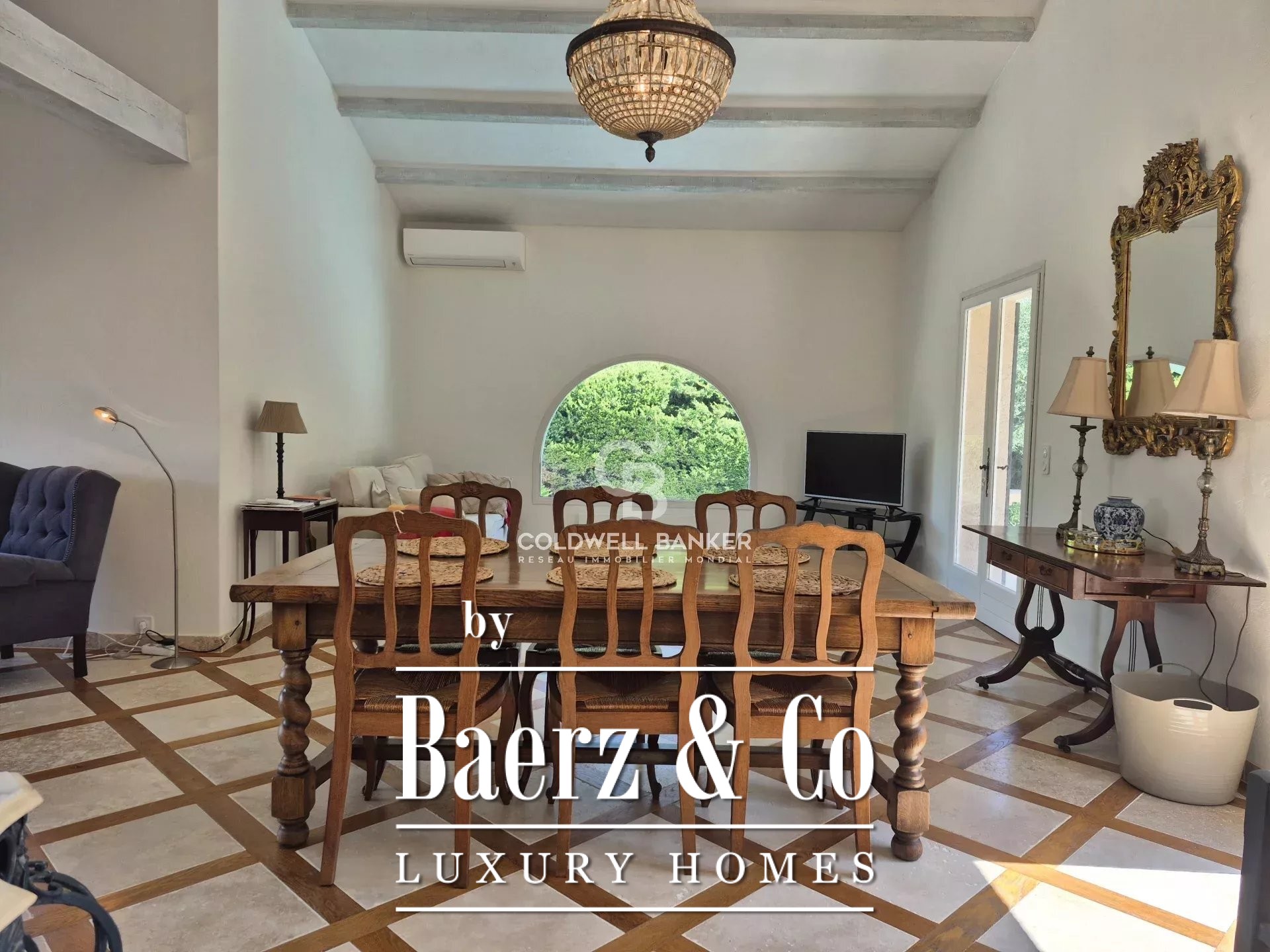Charming Provençal house in excellent condition, comprising an entrance hall, a spacious and bright living room, an office, three bedrooms, and two shower rooms. Attractive 620 sq m garden with swimming pool and garage.