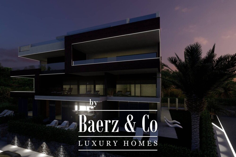 Apartment Zaton is set within a newly constructed luxury building only 20 meters from the Adriatic, where glass and stone capture the changing light of the coastline. This three-bedroom, three-bathroom residence spans 141 m² and combines restraint with Mediterranean vibrancy. Its thoughtful open-plan design brings together a living room, dining area, and kitchen, flowing out onto a broad terrace and private roof terrace of 115.31 m² fitted with a heated pool and pergola. Every element, from the Schüco aluminium carpentry with electric blinds to the Schindler lift and Mitsubishi climate systems, demonstrates a purposefully high standard. First-class ceramics, elegant parquet, and security doors round out the materials palette, balancing protection and poise.