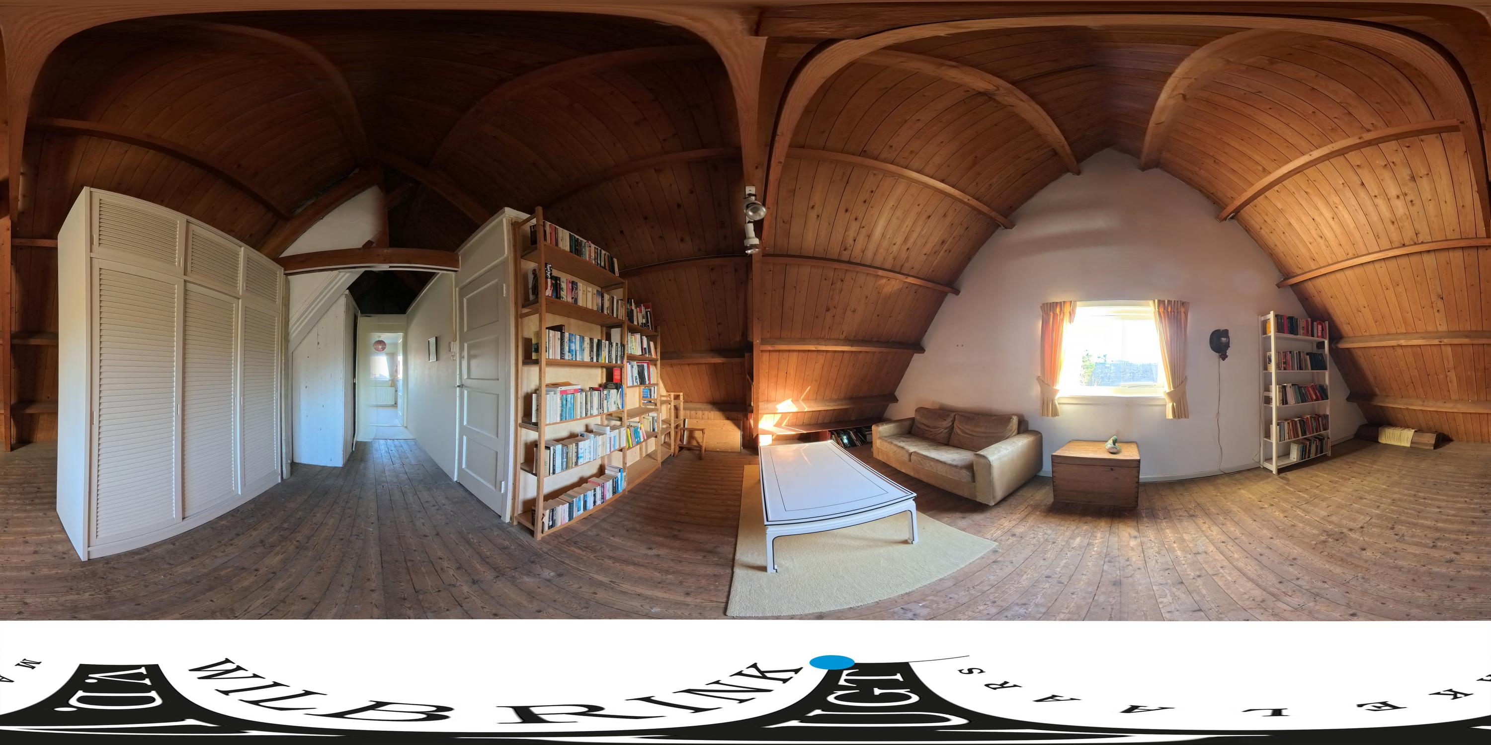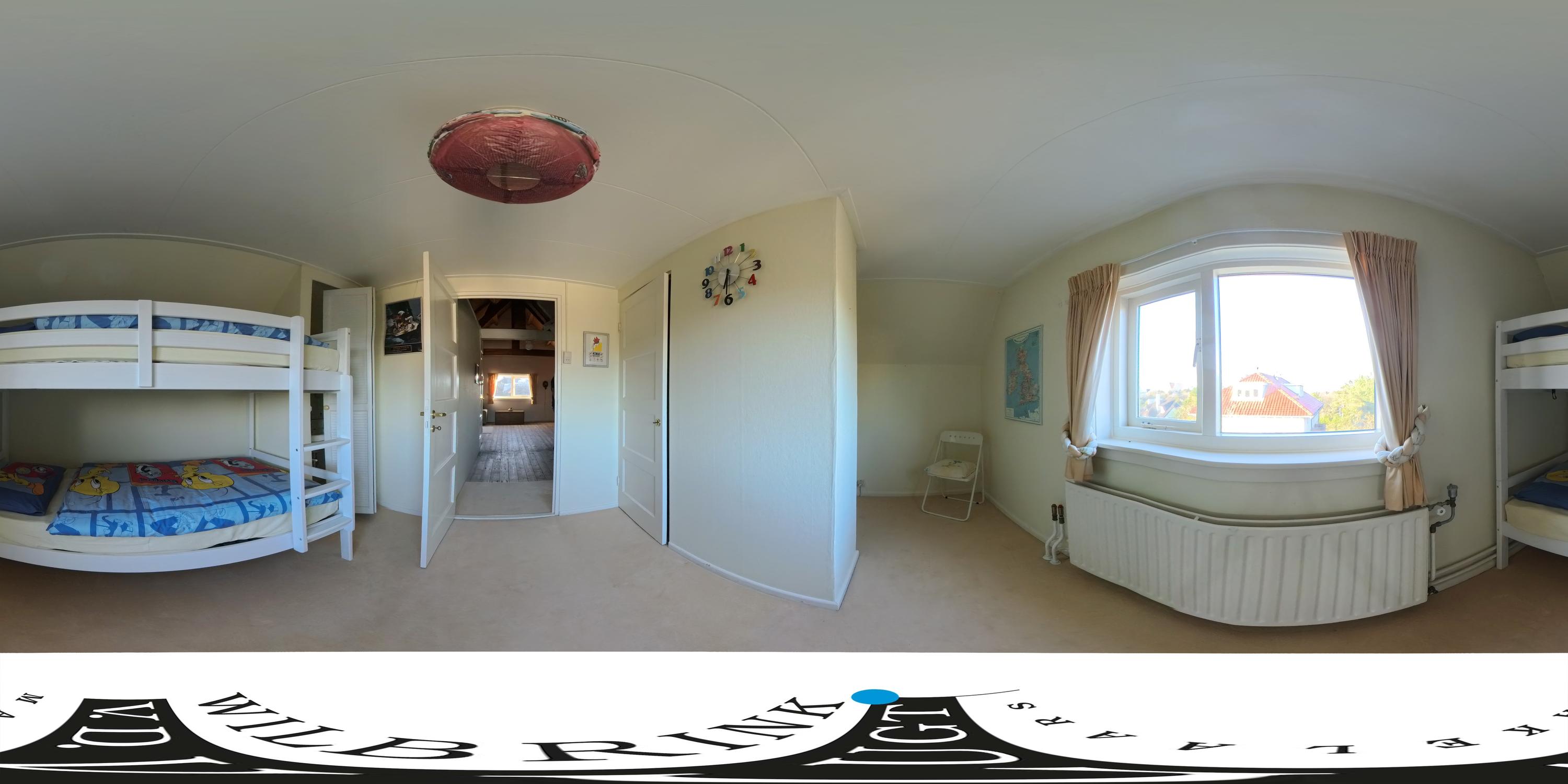 The staircase leads to a surprisingly spacious floor with a large landing/multifunctional room and a fifth bedroom with its own sink and deep closet. You will also find a darkroom here.