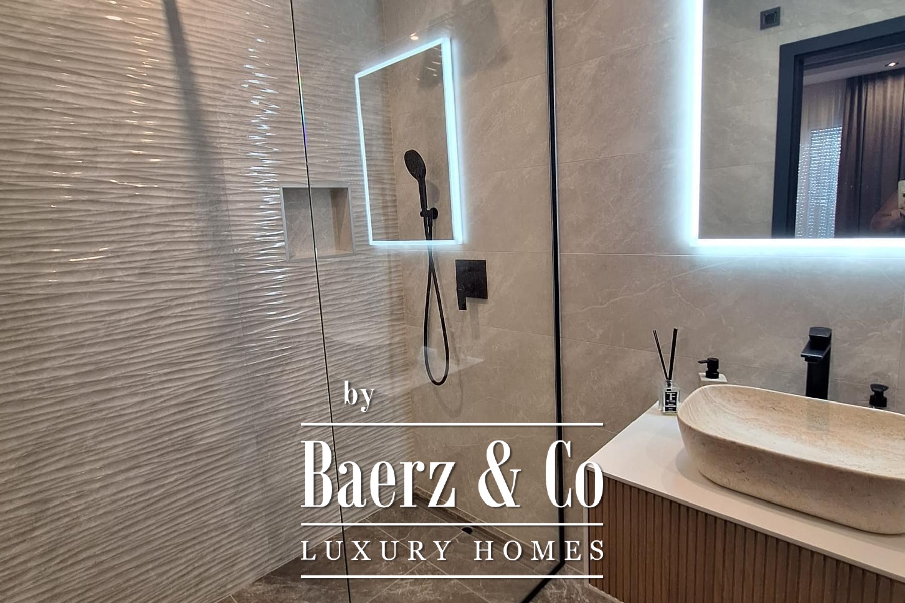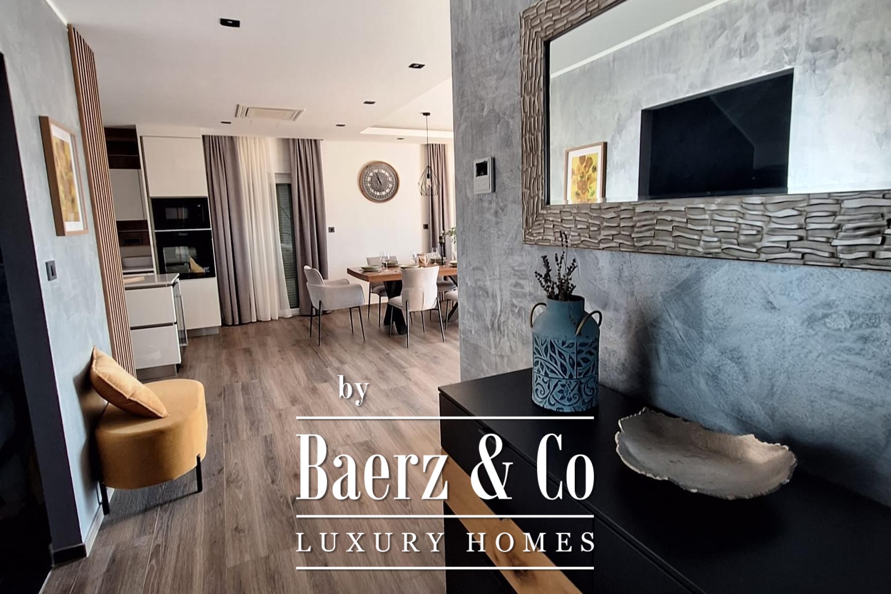 For sale is an exclusive luxury villa located in Novi Vinodolski, with a total living area of approx. 400 m², set on a 550 m² plot. The property is positioned in an excellent location, third row from the sea, just 500 meters from the town center. It features modern architecture, high-quality finishes, and panoramic sea views from nearly every part of the house. Layout: Level -1 • Planned wellness area • Gym • Sports/recreation