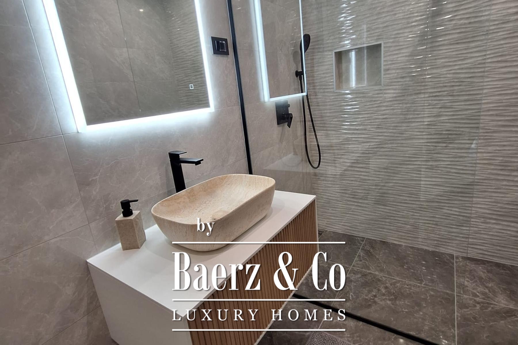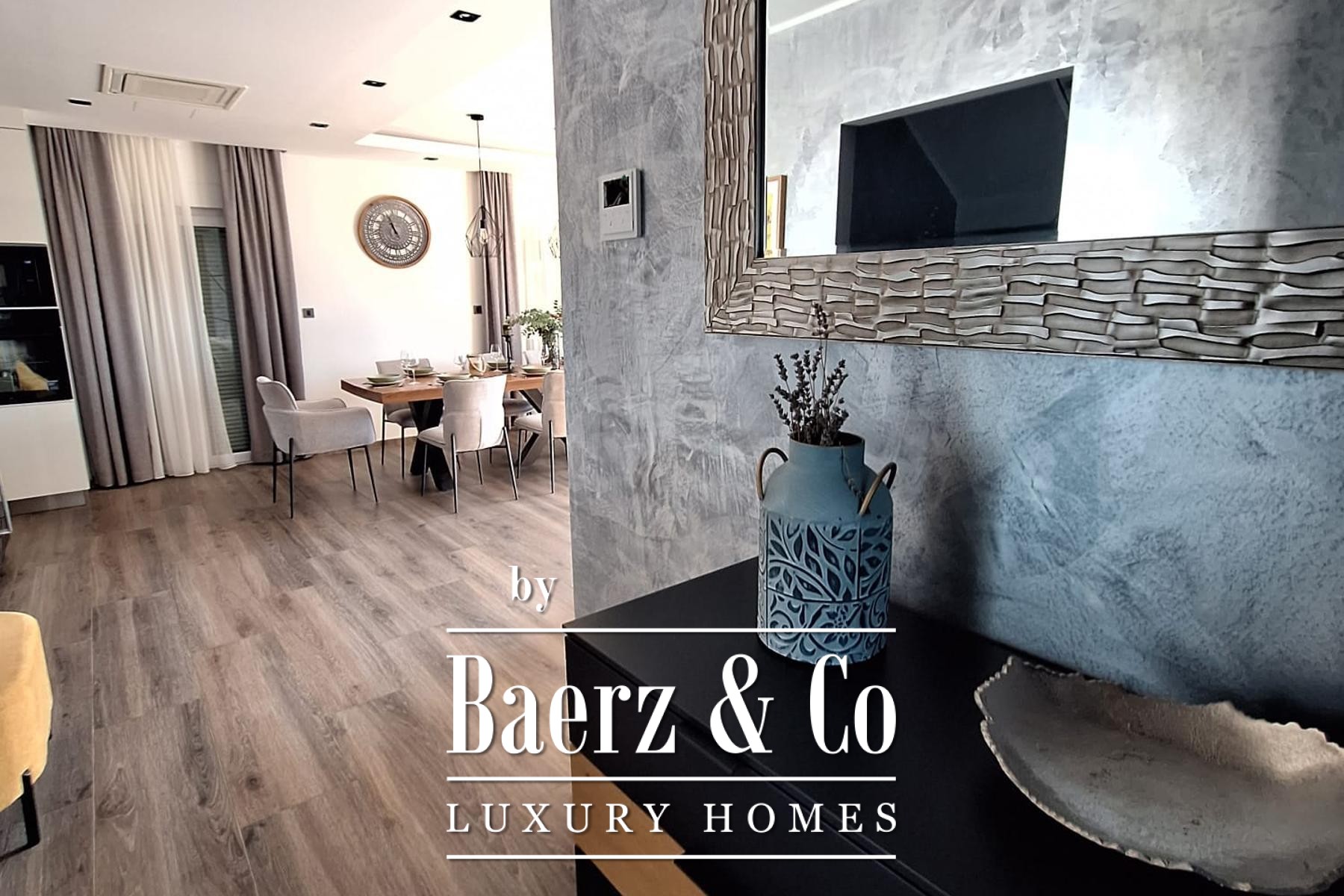 space • Laundry room Ground Floor • Spacious living room with open-plan kitchen and dining area • Bathroom • Guest toilet • Bedroom with en-suite bathroom First Floor • Four bedrooms • Each with private en-suite bathroom The exterior offers a generous terrace with a swimming pool, perfect for relaxing and enjoying the spectacular sea view. For more information or to arrange a viewing, please feel free to contact us.