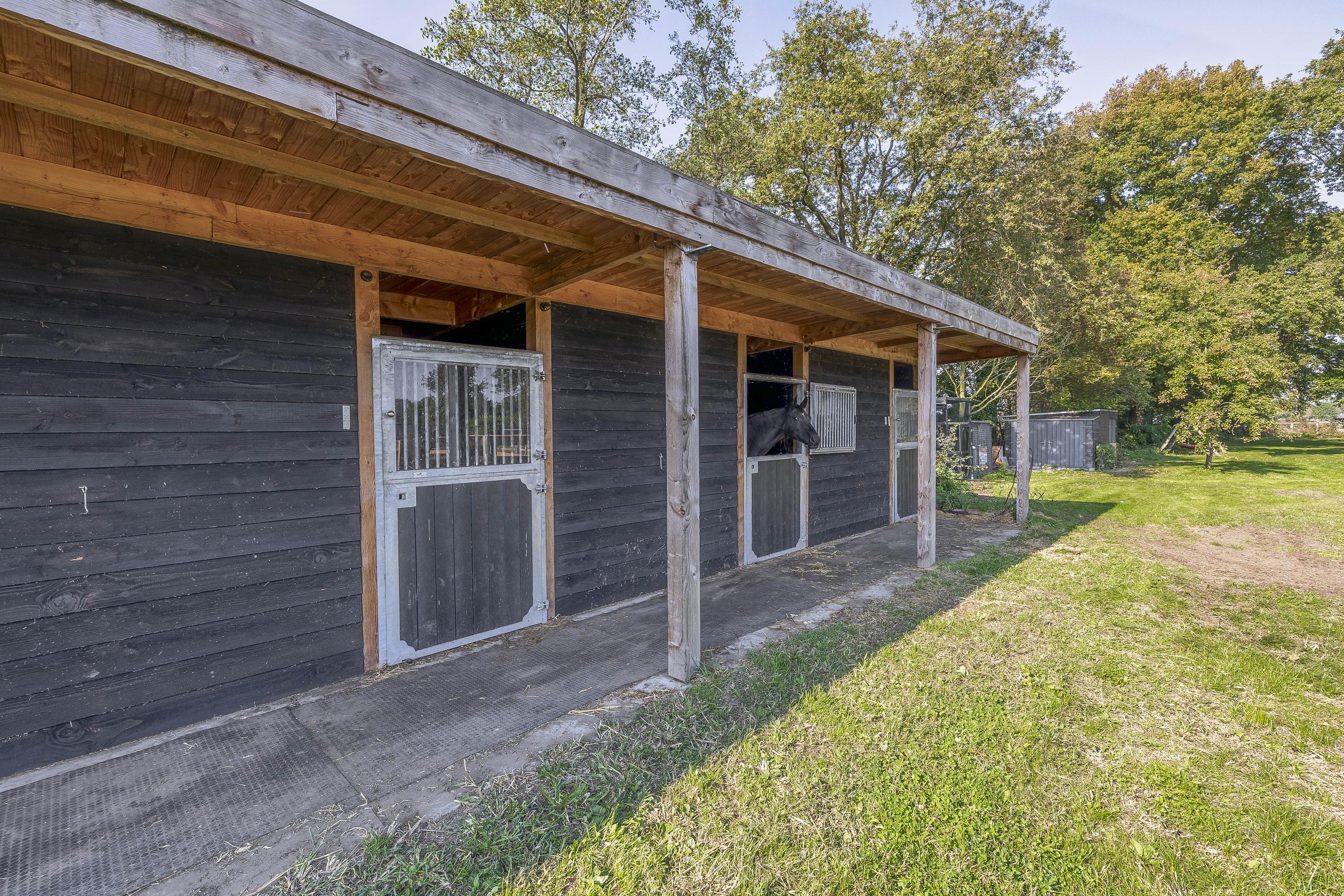 The beautiful garden surrounds the house and has several outbuildings. It is a park-like garden with lots of privacy, a large lawn, meadow, mature planting and several terraces. There is also a stable for keeping four horses as a hobby. There are also paddocks, one of which has a shelter. There are also two lockable barns.