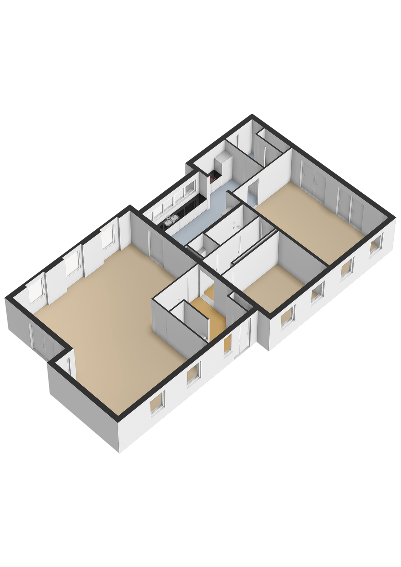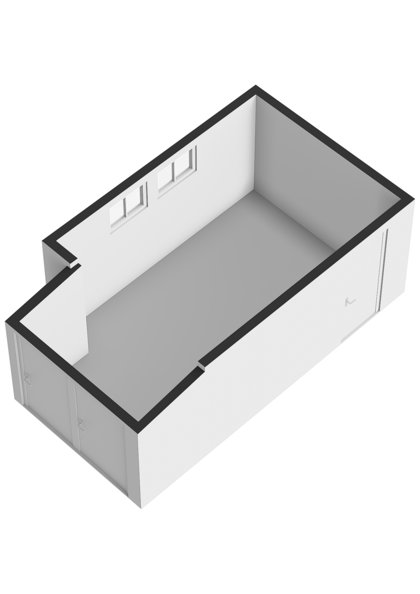 The multifunctional room is currently furnished as a second living room, but this space could also be furnished as a bedroom or chill-out room, for example. The room has sleek stucco walls and a stucco ceiling with recessed spotlights. There are several windows, which provide pleasant light, and French doors provide access to the garden.