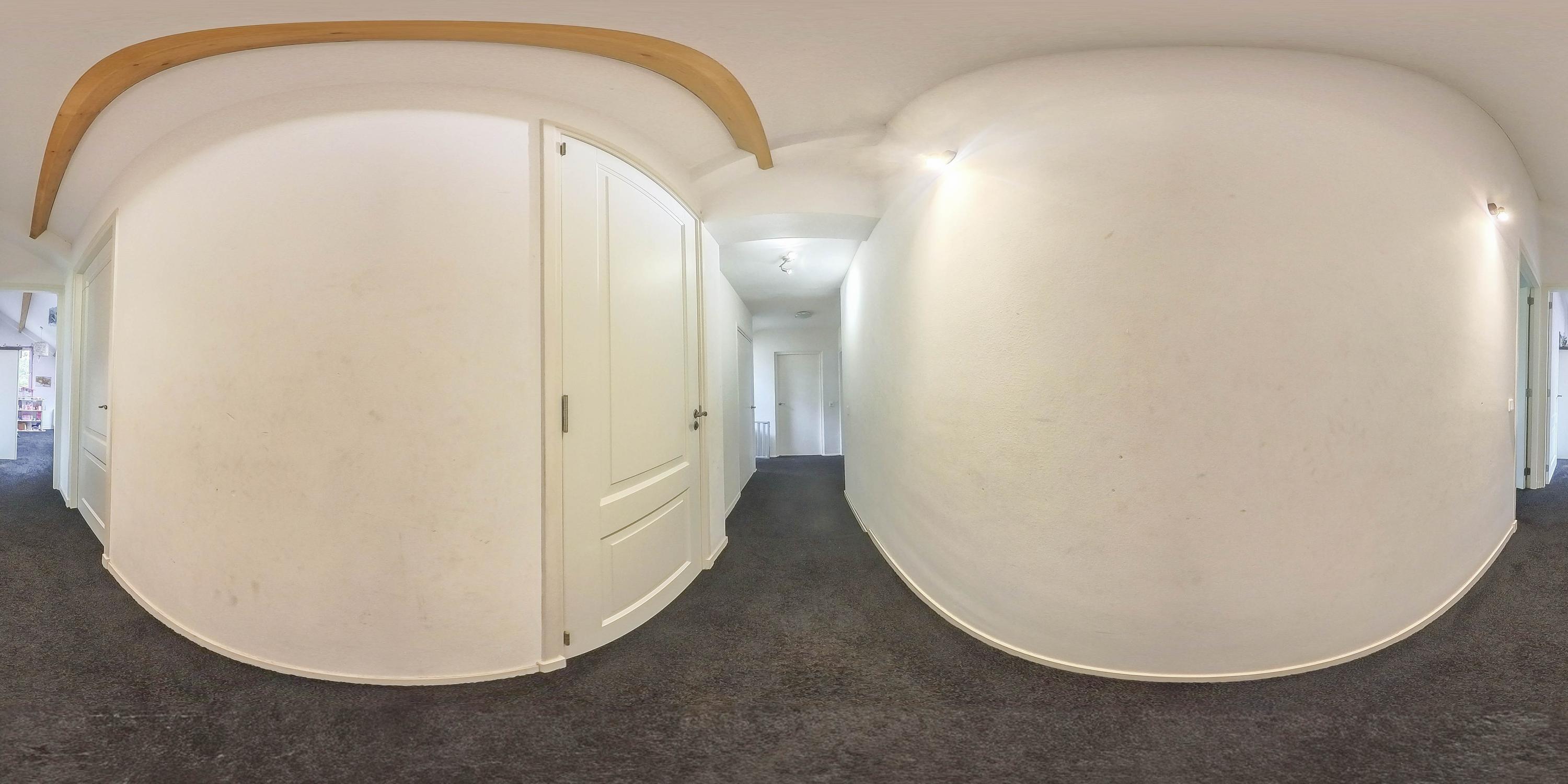 A monumental front door opens onto the spacious, light-filled hall, which provides access to the meter cupboard, staircase to the first floor, living room, toilet, bathroom, office space and multifunctional room. The hall is finished with continuous wood-look tiled flooring with underfloor heating throughout the entire floor, sleek stucco walls and a stucco ceiling.