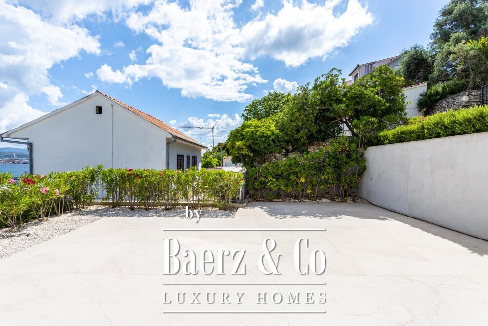 Villa Okrug Croatia stands as a contemporary retreat, set just one row back from the Adriatic shoreline. This three-level villa offers a living area of 326 m² on a 728 m² plot, combining clean architectural lines with unobstructed sea views and access to the tranquil waters that define the island of Čiovo. The focus keyword villa Okrug Croatia speaks to the unique balance of privacy and connection to the Adriatic lifestyle.